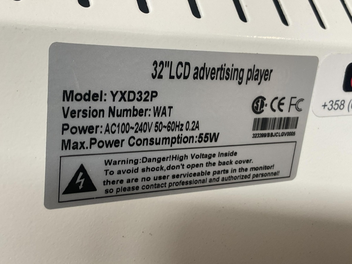 Myyntikohteet » 2. Best-Caravan Oy:n konkurssipesä, HYVINKÄÄ (1824257-7), 19.03.2026 » 71. Digitaalinen infonäyttö Fisplay 32 tuum.