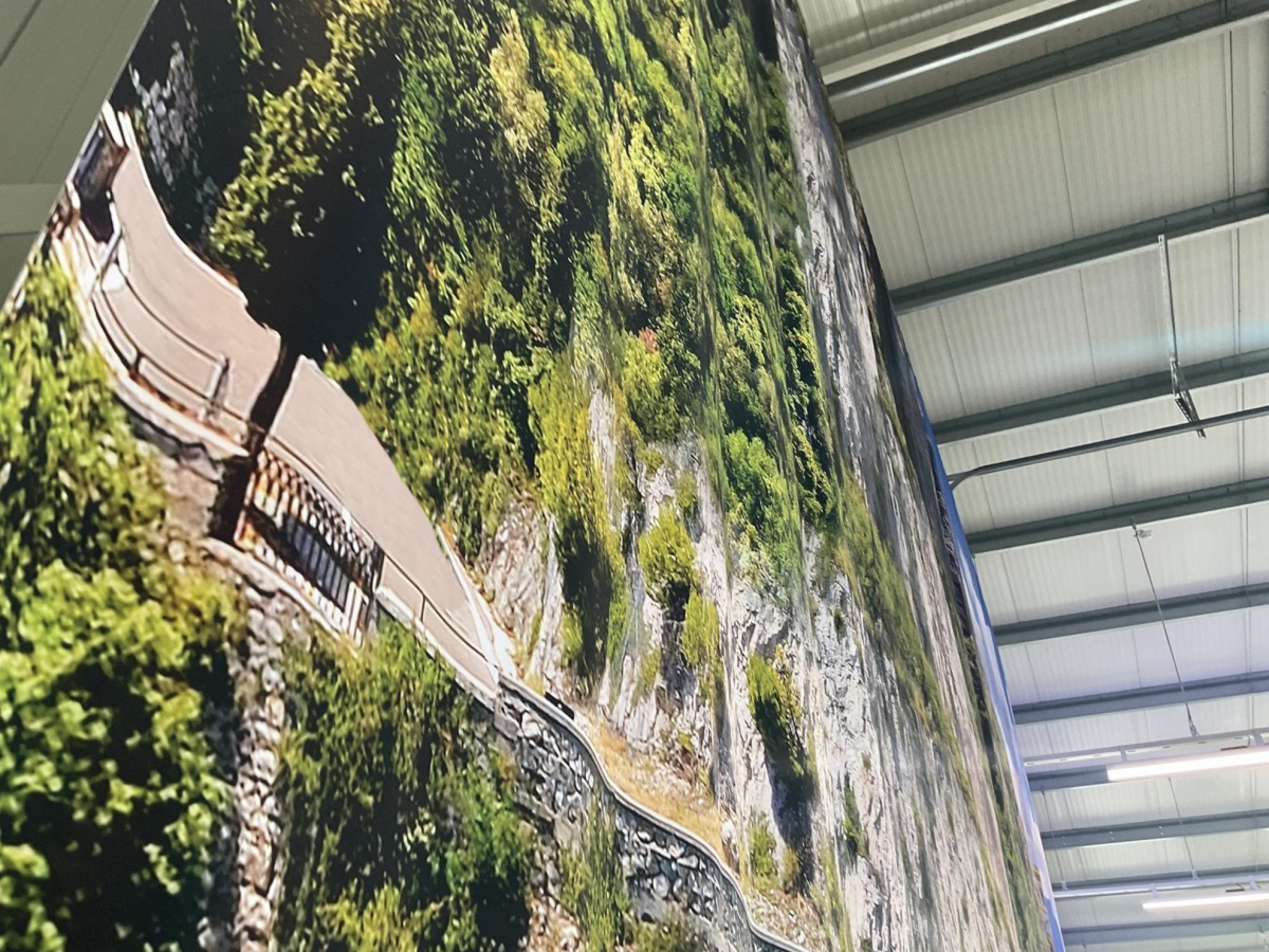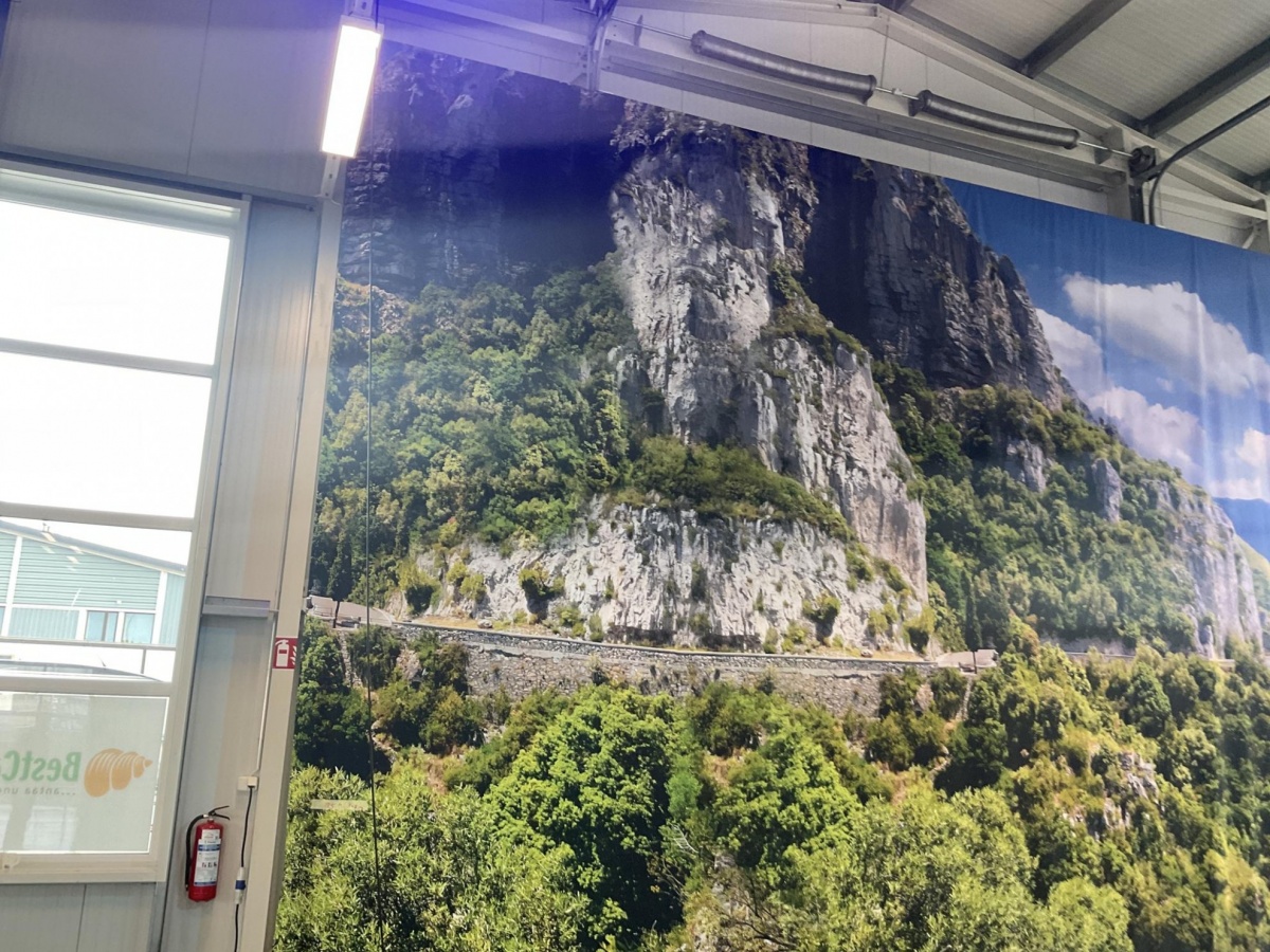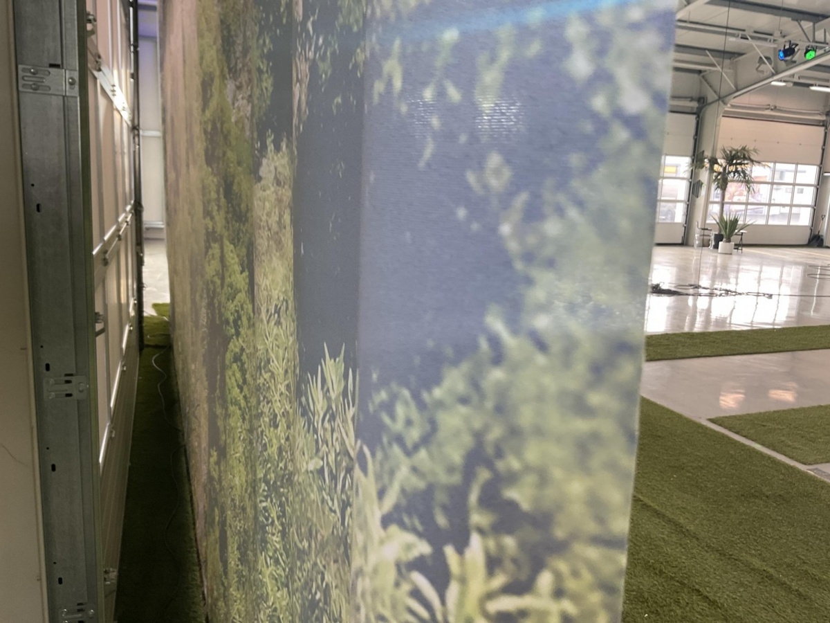 Suurikokoinen tulostettu kangasseinä / messuseinä (taustaseinä) 9x8 metriä