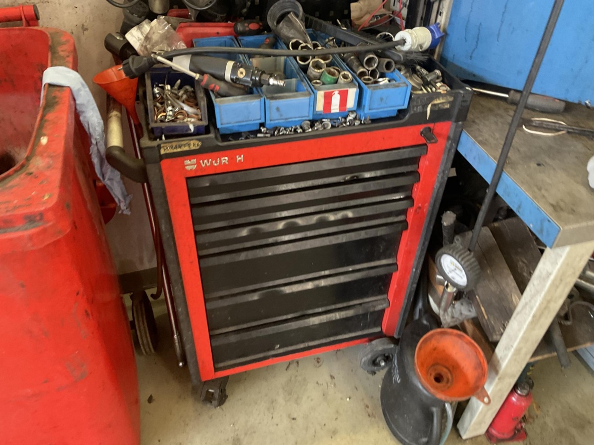 Myyntikohteet » 4. Best-Caravan Oy:n konkurssipesä, HYVINKÄÄ (1824257-7), 19.03.2026 » 110. Työkaluvaunu (Würth, laatikosto) Seinä-/kaappimallinen työkalukaappi + työkalut
