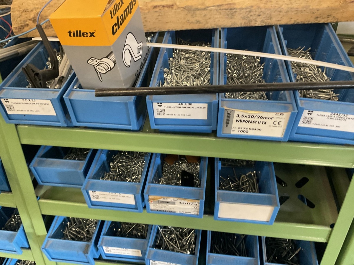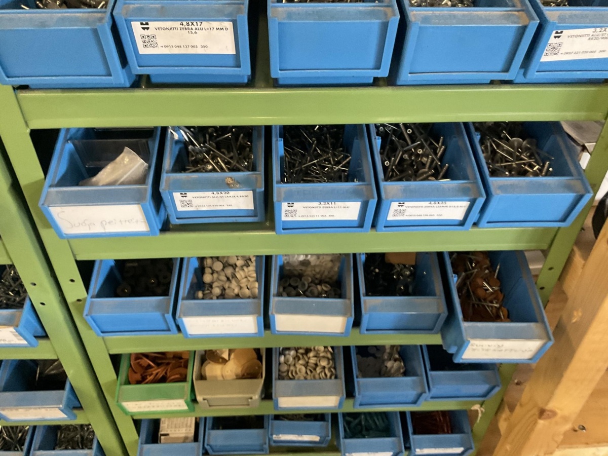 Laskettu kokonaismäärä 80–85 sinistä laatikkoa kiinitystarvikelaatikkoa