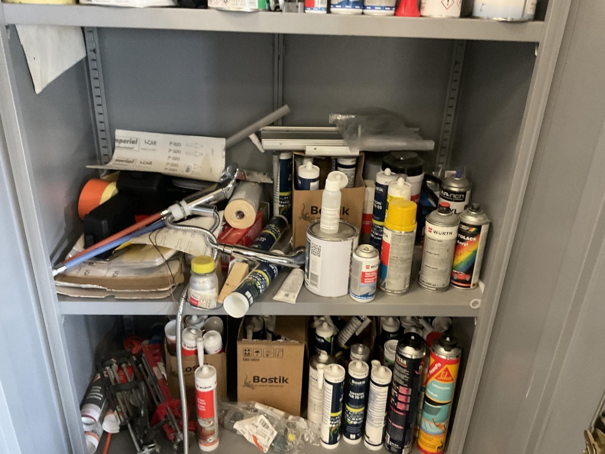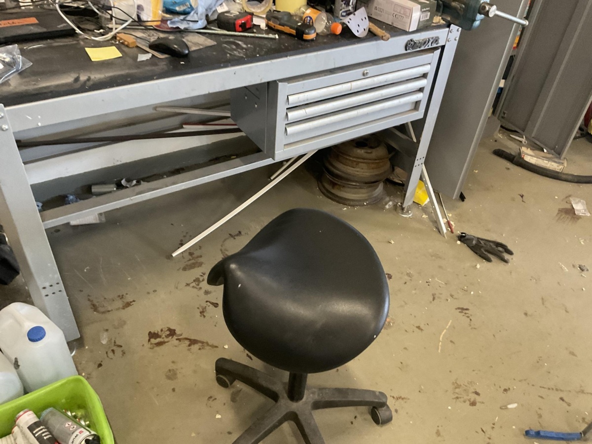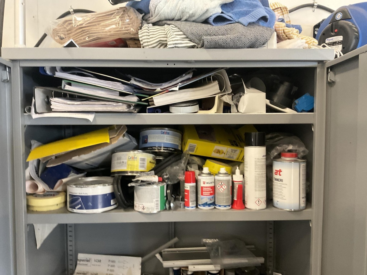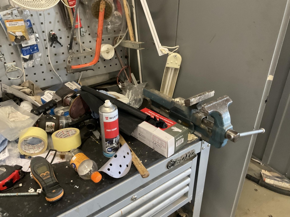 Myyntikohteet » 4. Best-Caravan Oy:n konkurssipesä, HYVINKÄÄ (1824257-7), 19.03.2026 » 135. Työpöytä (metallinen runko, vetolaatikolla – Boxo) ja Metallinen kemikaalikaappi (Würth) + sisältö