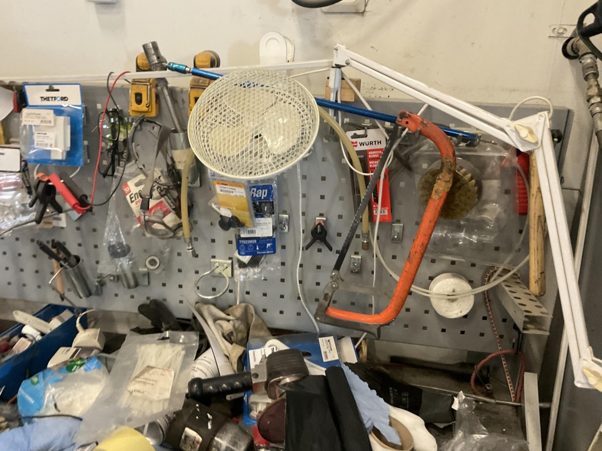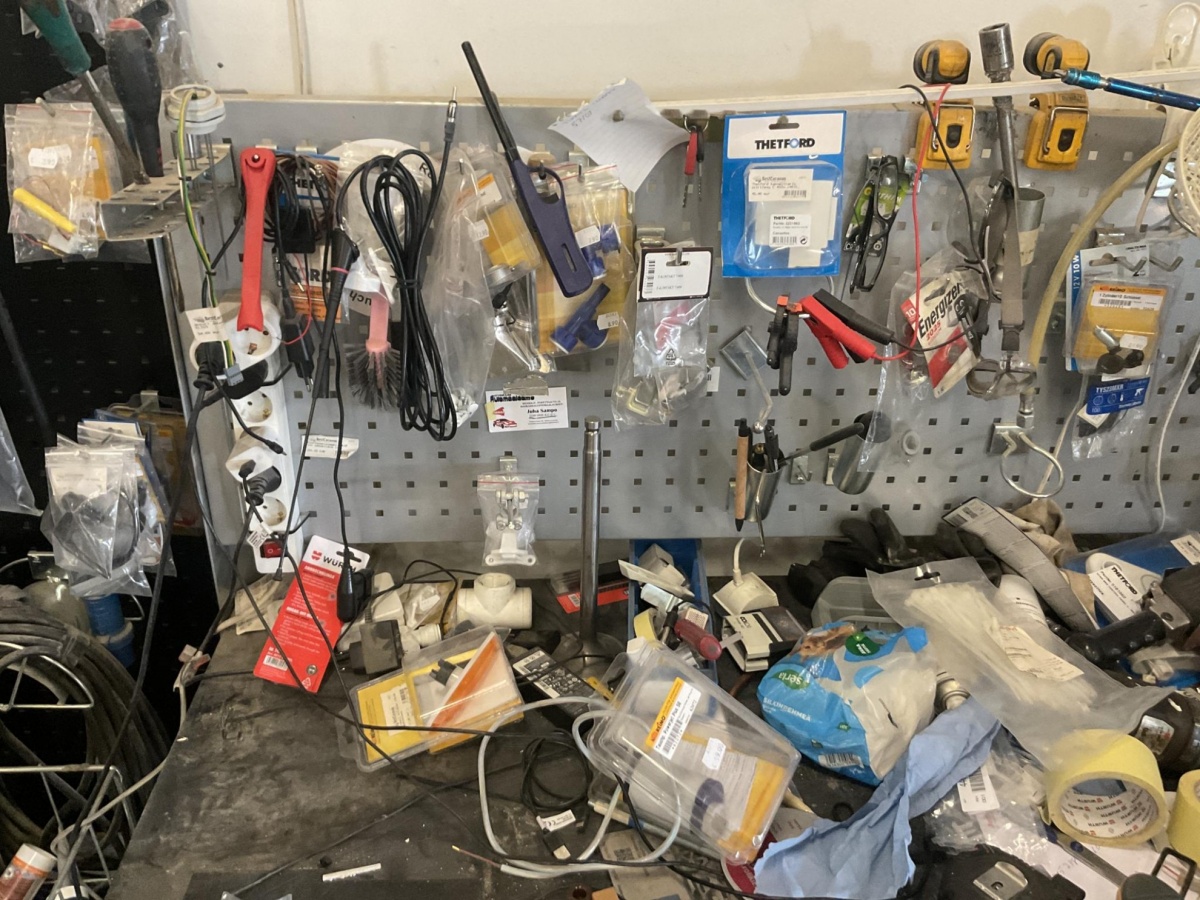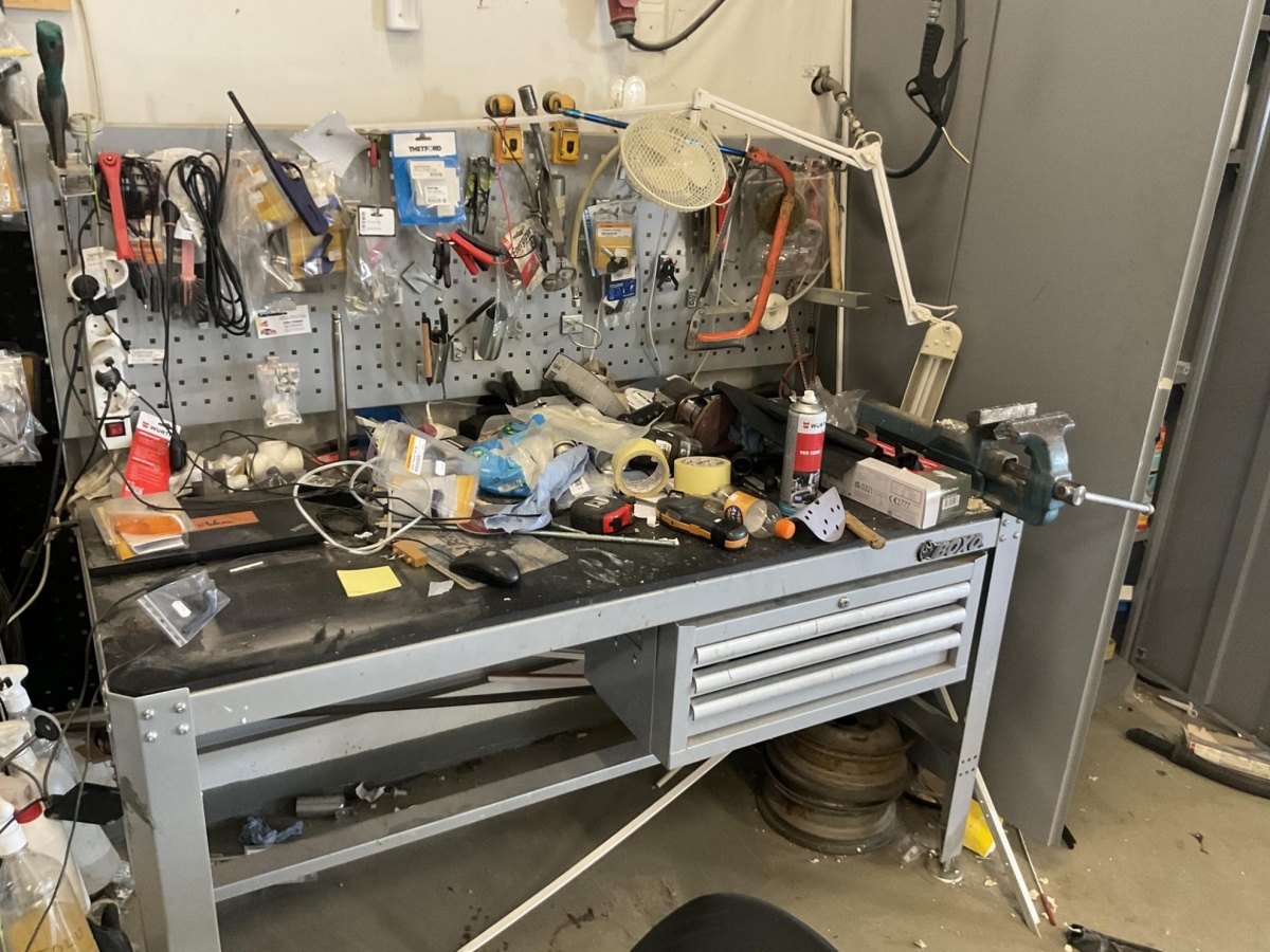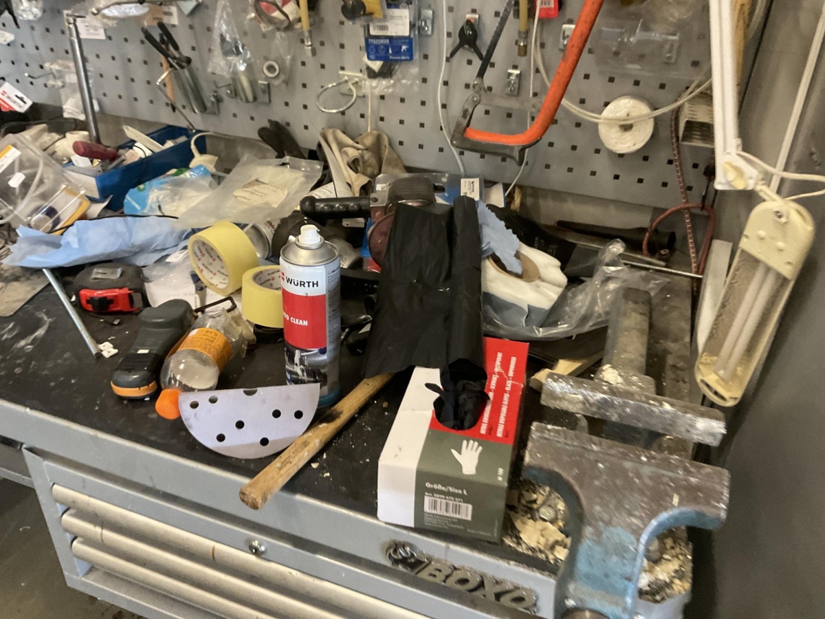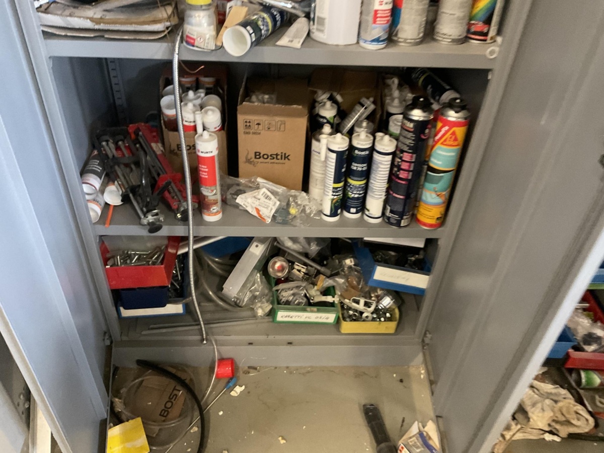 Myyntikohteet » 4. Best-Caravan Oy:n konkurssipesä, HYVINKÄÄ (1824257-7), 19.03.2026 » 135. Työpöytä (metallinen runko, vetolaatikolla – Boxo) ja Metallinen kemikaalikaappi (Würth) + sisältö