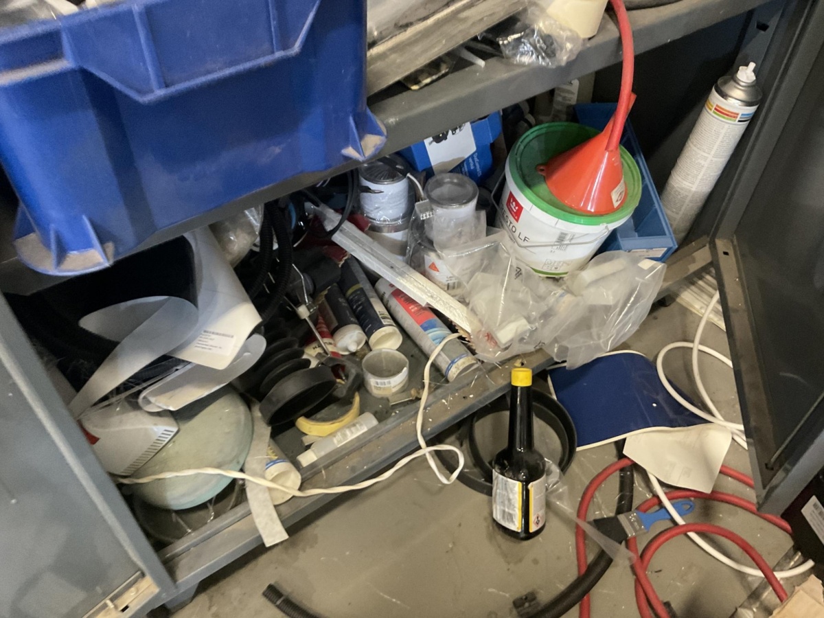 Myyntikohteet » 4. Best-Caravan Oy:n konkurssipesä, HYVINKÄÄ (1824257-7), 19.03.2026 » 136. Sekatyöpiste, jossa kemikaalit, käsityökalut ja asennustarvikkeet samassa alueessa.