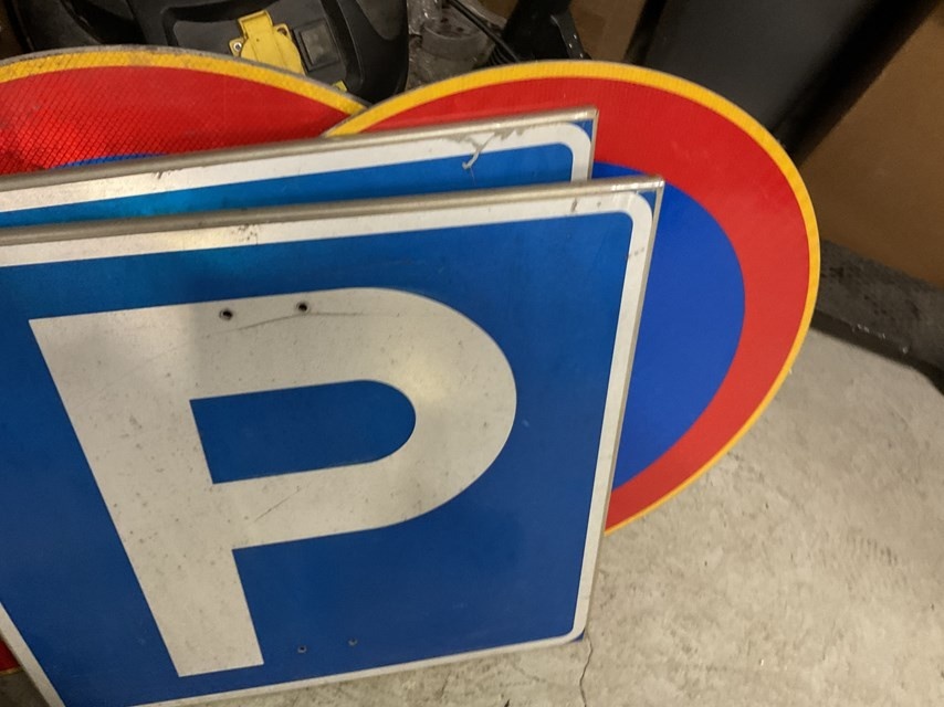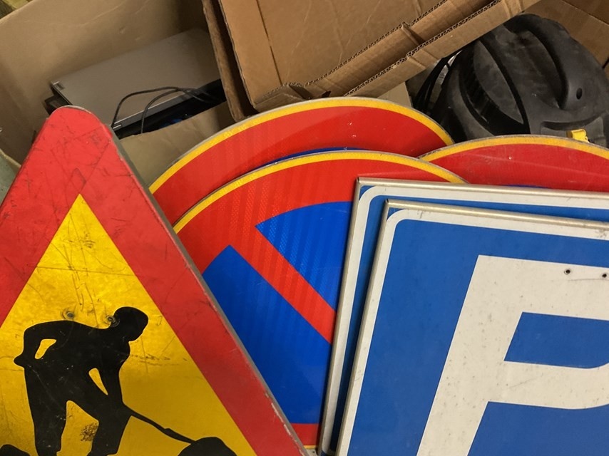 Myyntikohteet » Banaanikärpänen Oy:n konkurssipesä, VÄSTANFJÄRD (3422017-5) nouto Forssasta, 19.03.2026 » 03. Liikennemerkit (tilapäisesti kiinnitettävät)