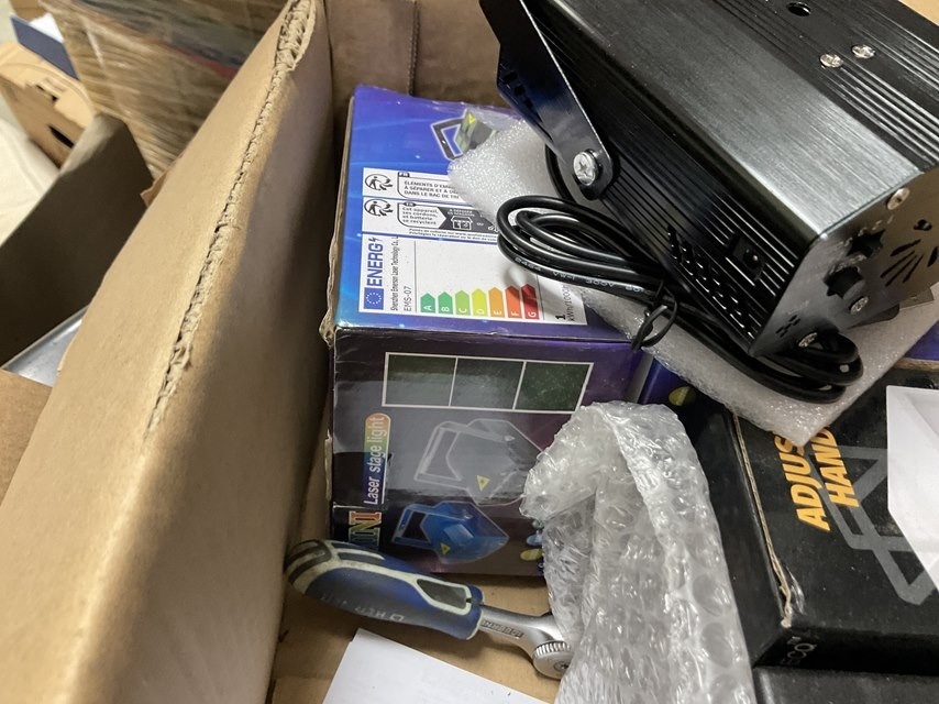 Myyntikohteet » Banaanikärpänen Oy:n konkurssipesä, VÄSTANFJÄRD (3422017-5) nouto Forssasta, 19.03.2026 » 07. Radiopuhelimet ja sekalainen laatikko pieniä elektroniikkalaitteita