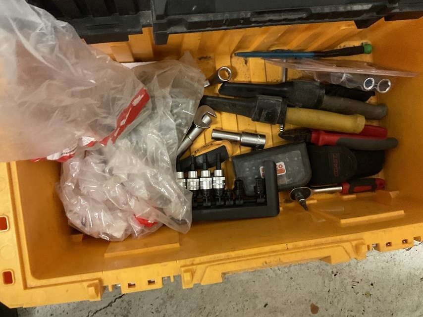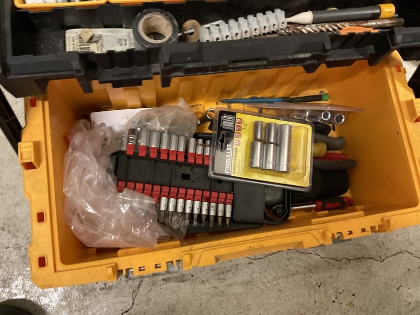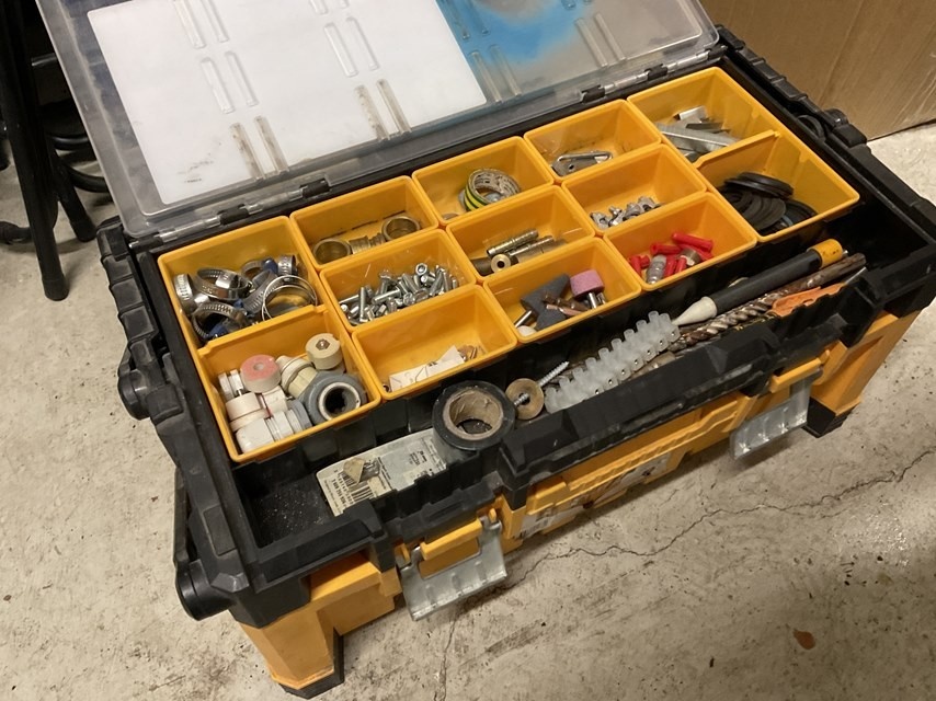 Työkalupakki (järjestelylaatikoilla) sekalainen työkalujen ja kiinnitystarvikkeiden sarja työkalupakissa