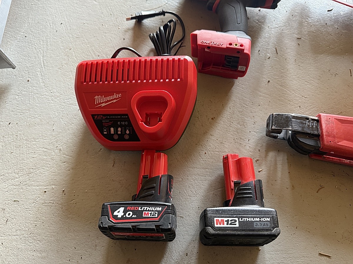 Myyntikohteet » 5. Gernel Oy:n konkurssipesä (2286718-2), SASTAMALA, 20.03.2026 » 77. Akkutyökalut Milwaukee (5 kappaletta) + akut (3 kappaletta) ja laturi