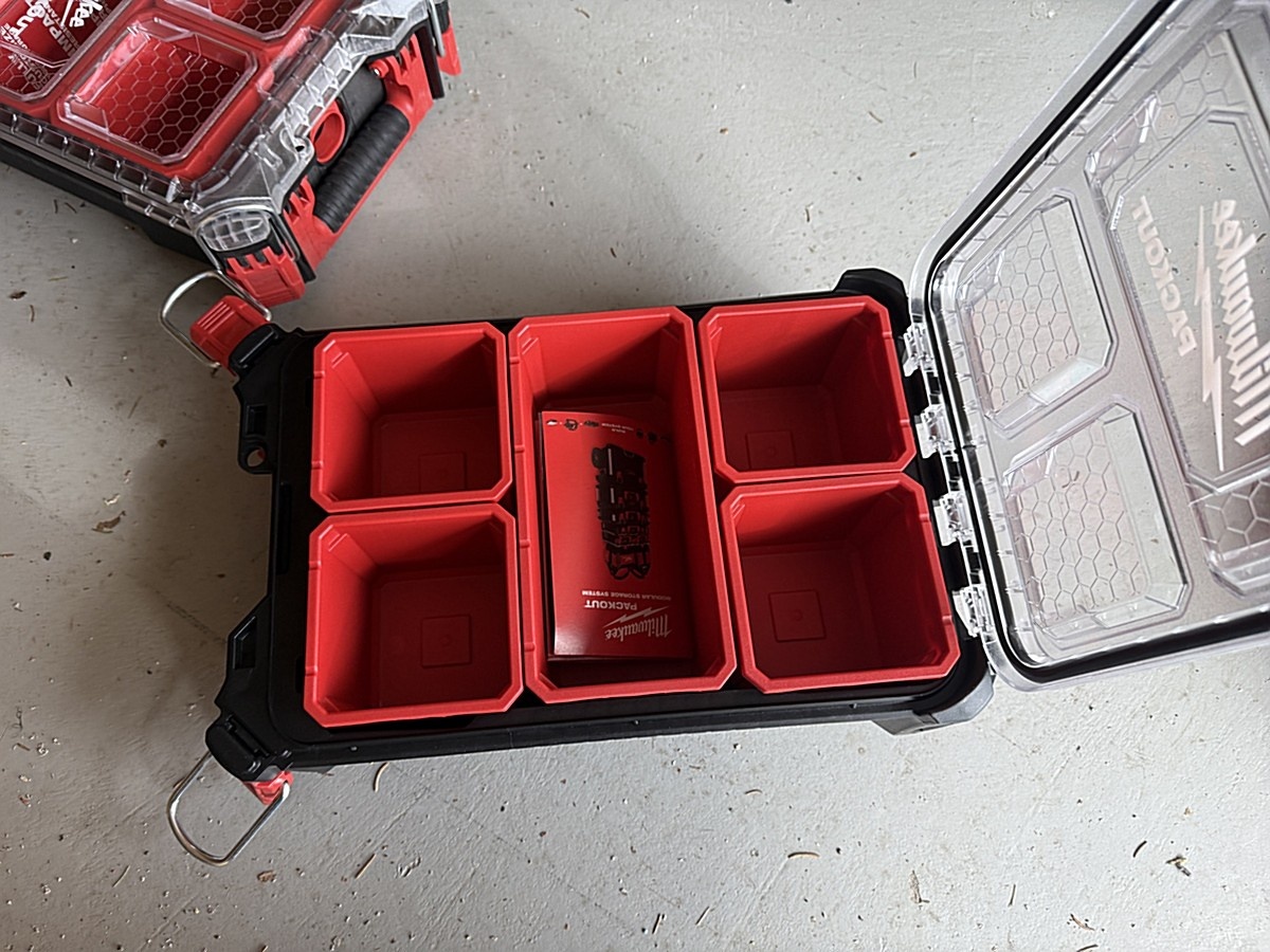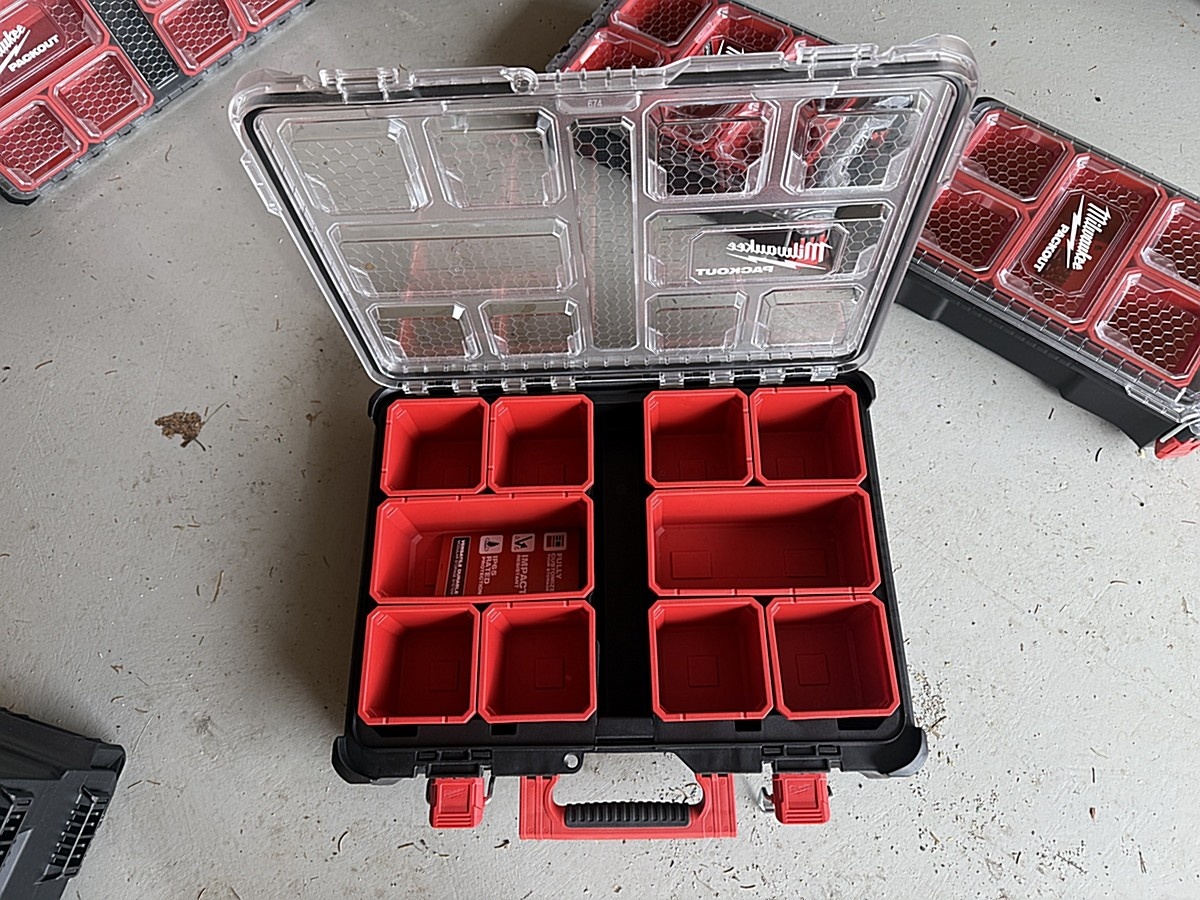 Myyntikohteet » 5. Gernel Oy:n konkurssipesä (2286718-2), SASTAMALA, 20.03.2026 » 84. Tarvikelokerot (6 kappaletta) seinäkiinnityksiin tai työkalulaatikoihin Milwaukee packout