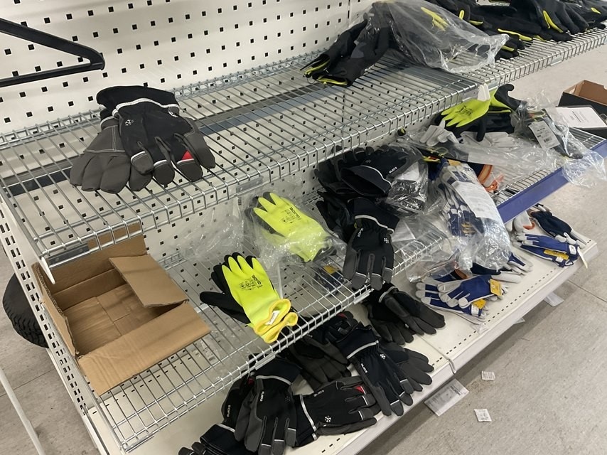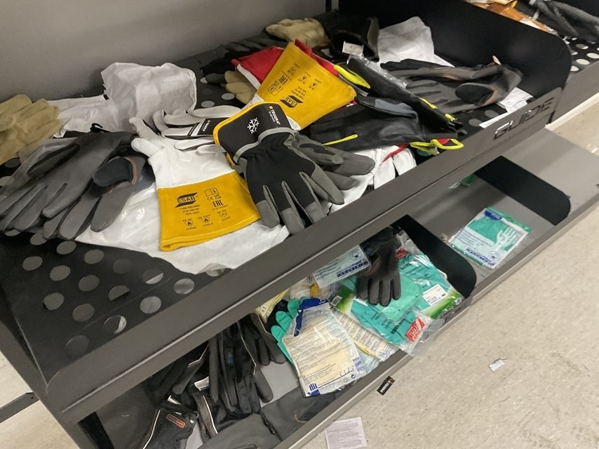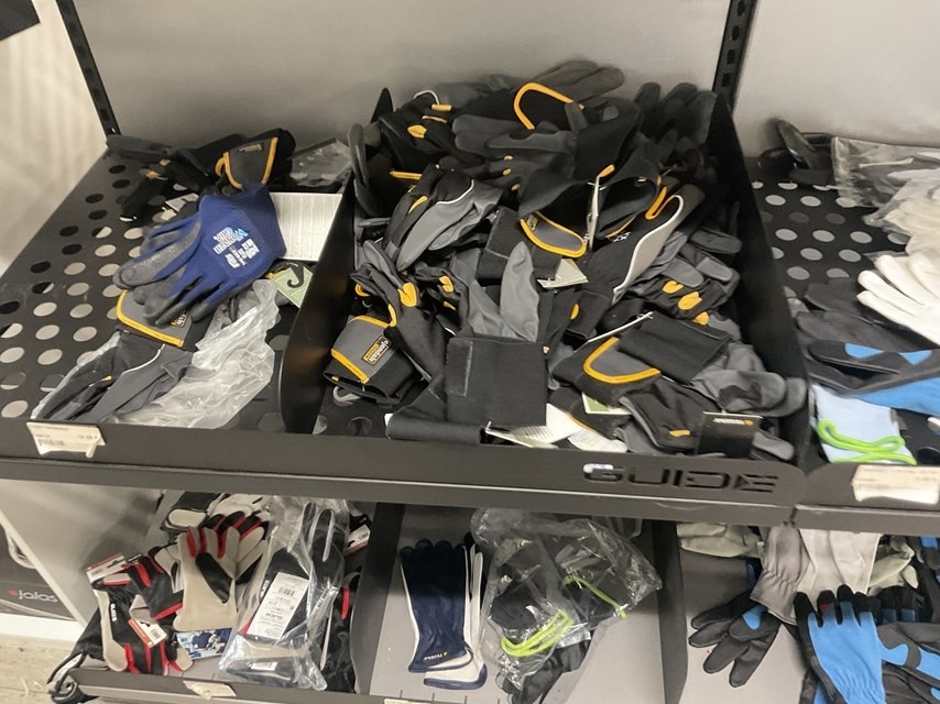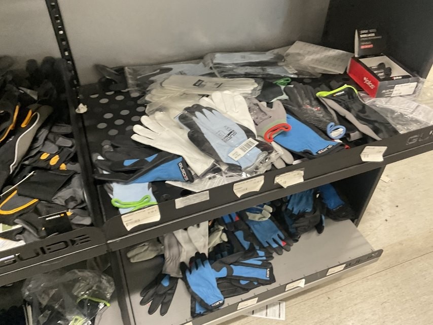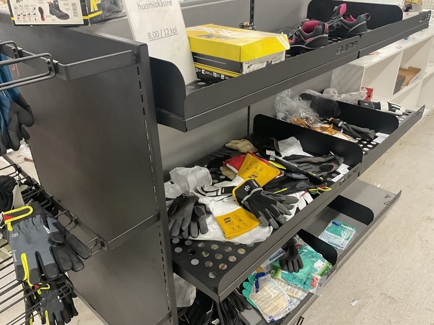 Myyntikohteet » 2. Kokemäen Varaosa / Kovatech Oy:n konkurssipesä, KOKEMÄKI (2136465-5), 14.03.2026 » 31-2. Myymälahyllyissa ja laatikoissa olevat käsineet ja vaatteet tms.