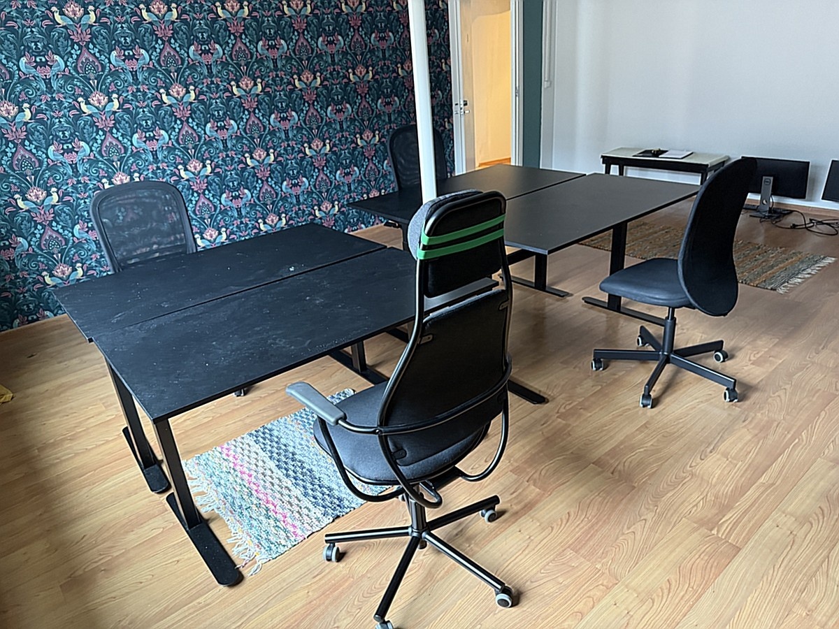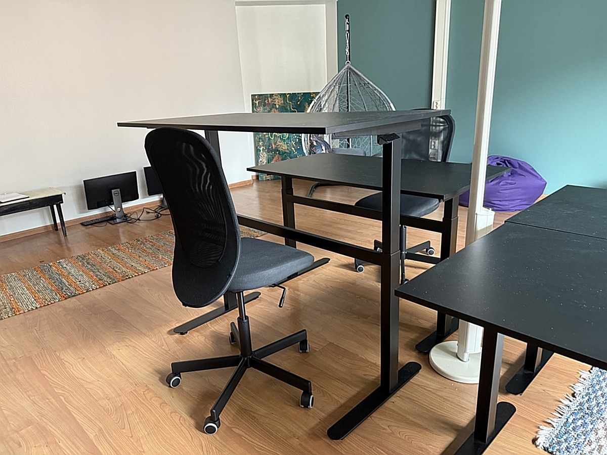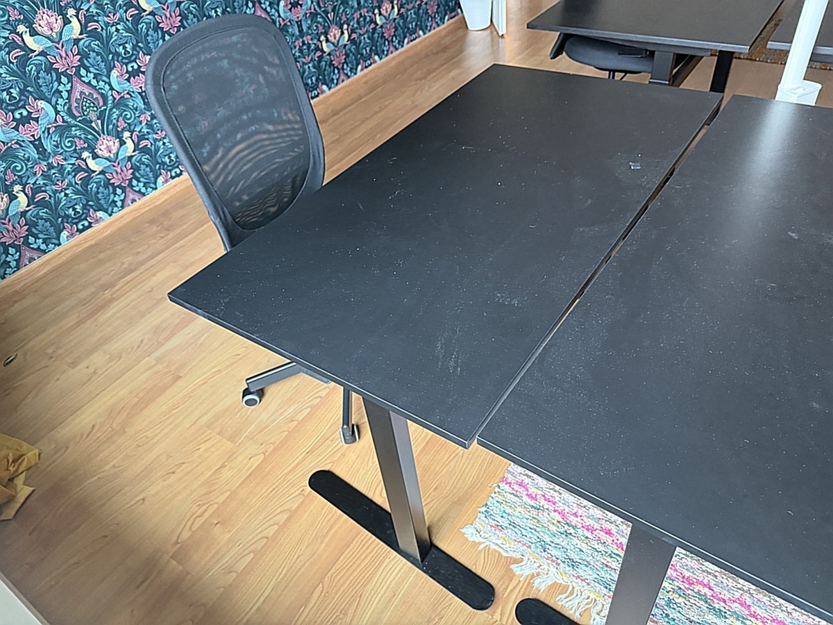 Myyntikohteet » 1. PälänPaja Oy:n konkurssipesä (3513802-6), TAMPERE, 23.03.2026 » 06. Toimistopöydät kaasujousisäädöllä (4 kappaletta) + tuolit (4 kappaletta)