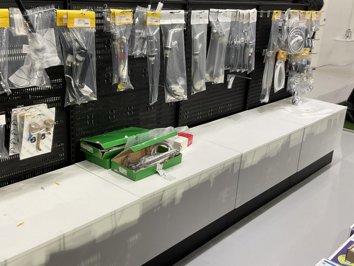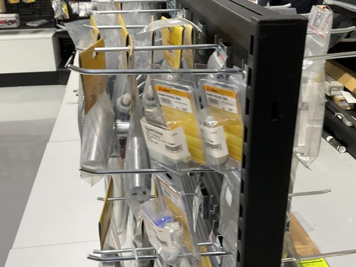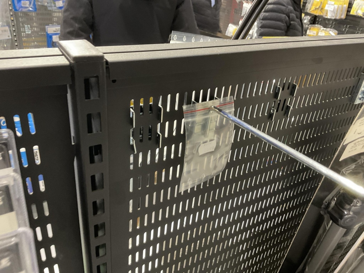 2-puoleinen myymälähylly; piikit, hyllyt ja ritilät