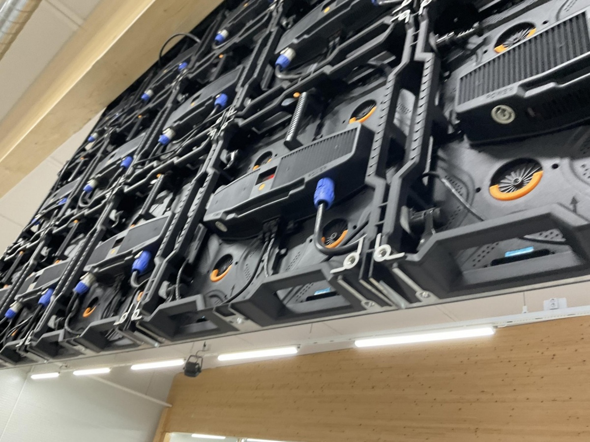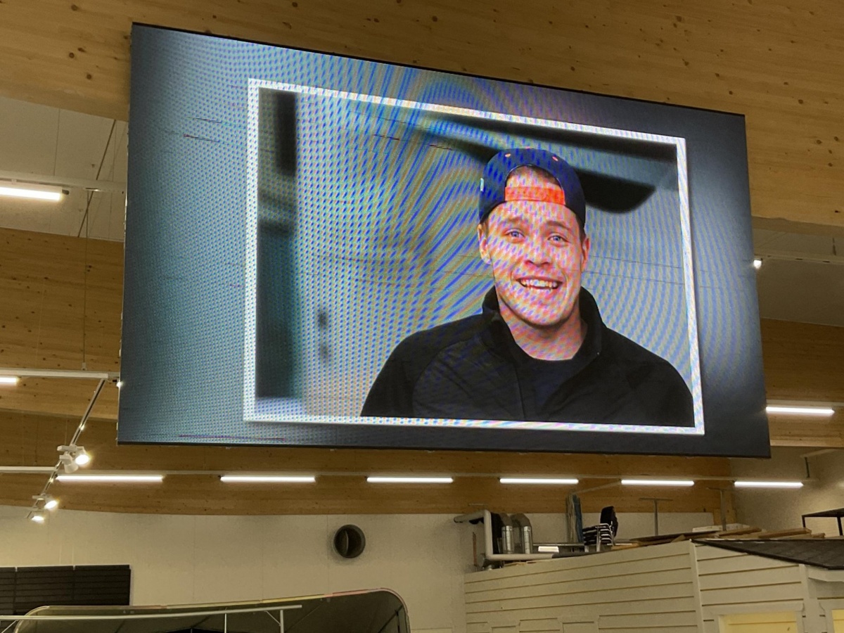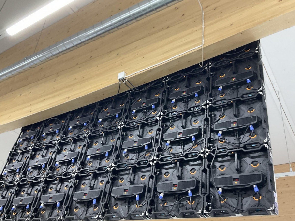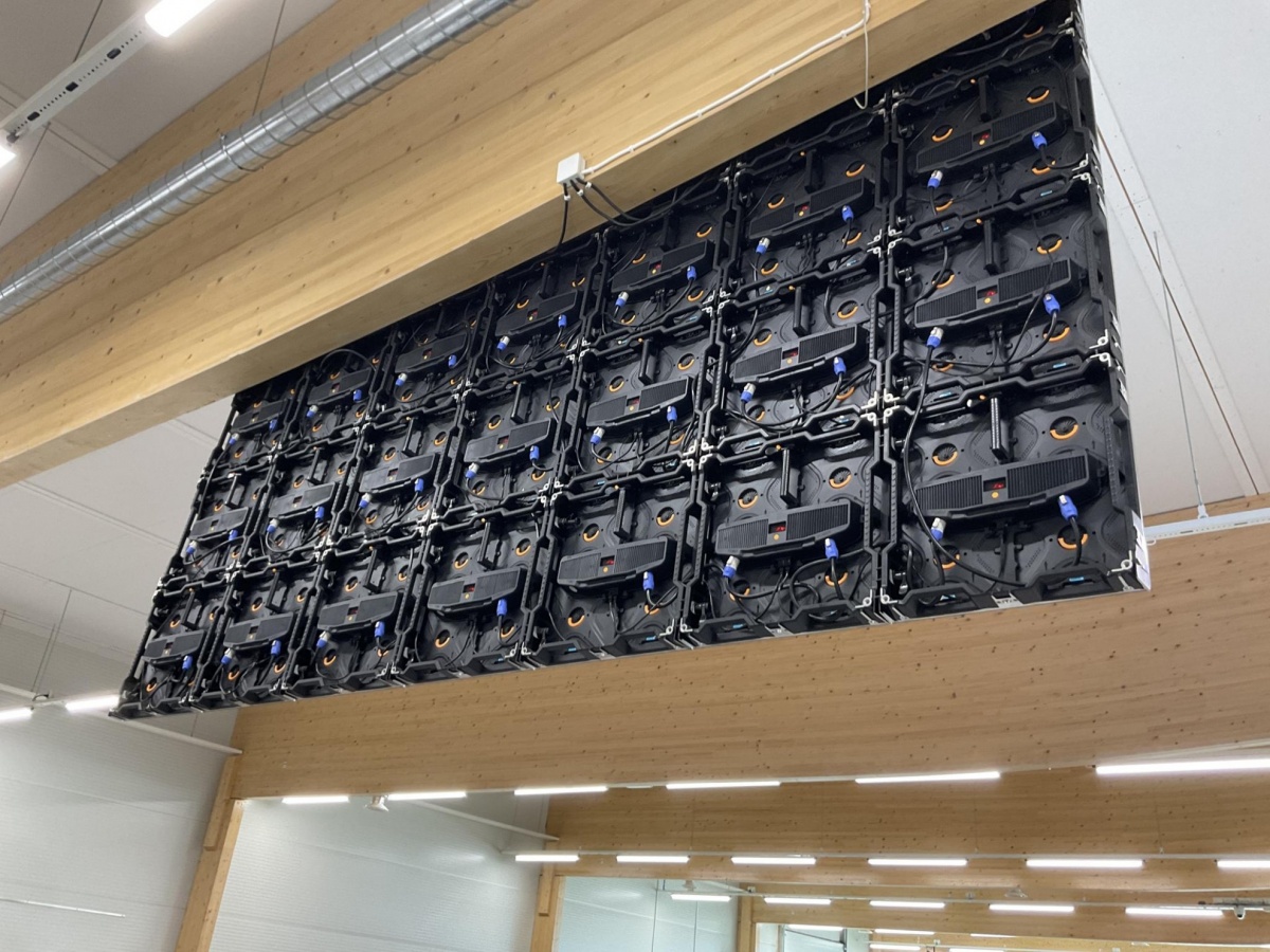 Useista LED-paneeleista muodostettu suuri mainosnäyttö