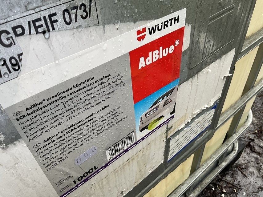 IBC-kontti jossa vähän AD-blue -urealiuosta