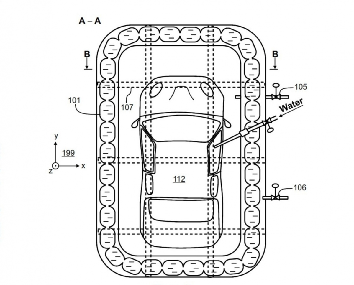 PATENTIN TIIVISTELMÄ: Sammutusjärjestelmä käsittää seinäelementin (101) palavan kohteen (112) ympäröimiseksi. Kohde voi olla esimerkiksi sähkö- tai hybridiauto, joka käsittää akun. Seinäelementin alareuna on konfiguroitu saamaan aikaan tiivistetty liitos seinäelementin alareunan ja pinnan (113), jolla palava kohde sijaitsee, välille. Seinäelementti ja pinta muodostavat altaan, joka voidaan täyttää sammutusvedellä kohteessa olevan palon sammuttamiseksi.