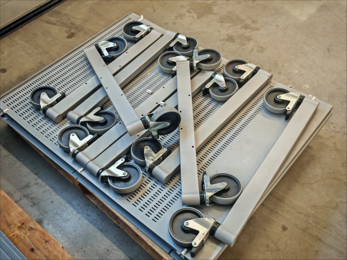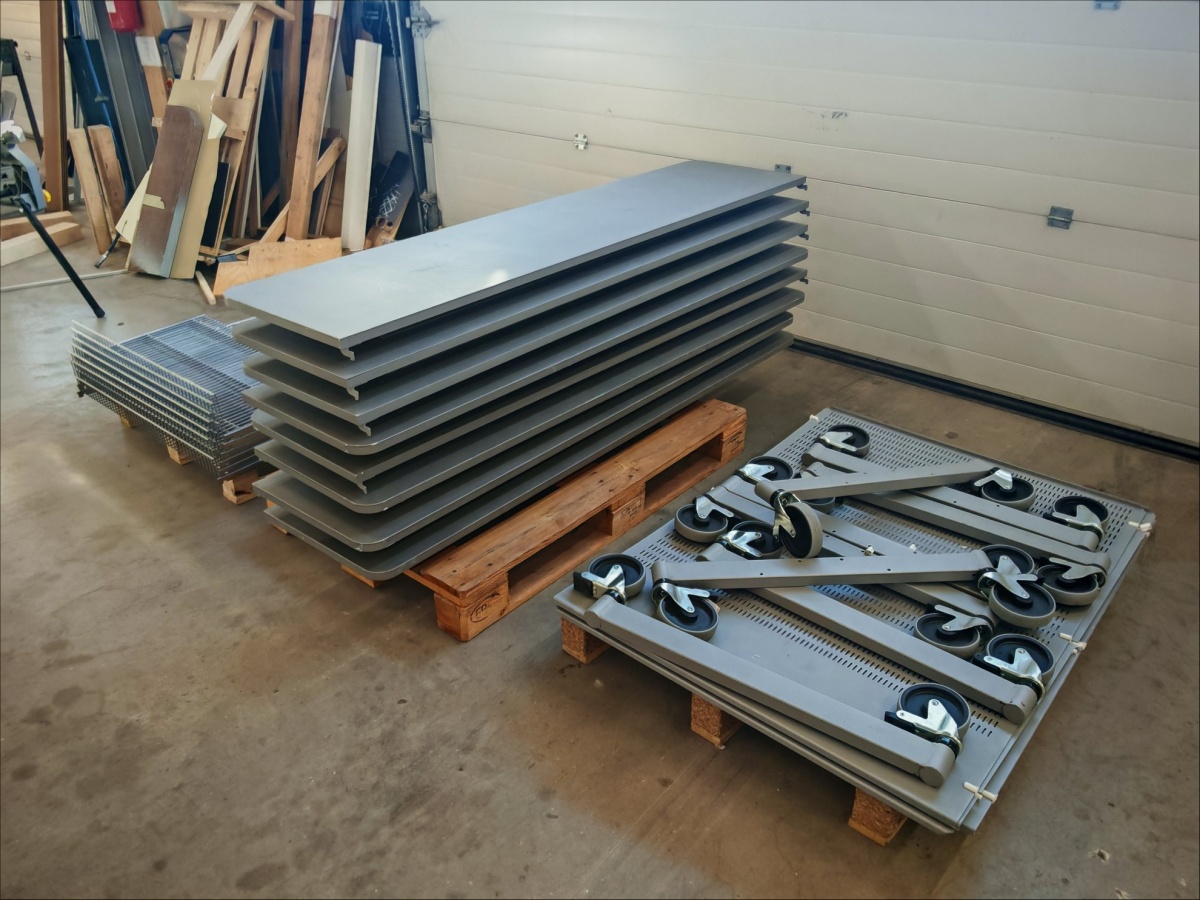 Erilaiset hyllyn osat neljällä kuormalavalla