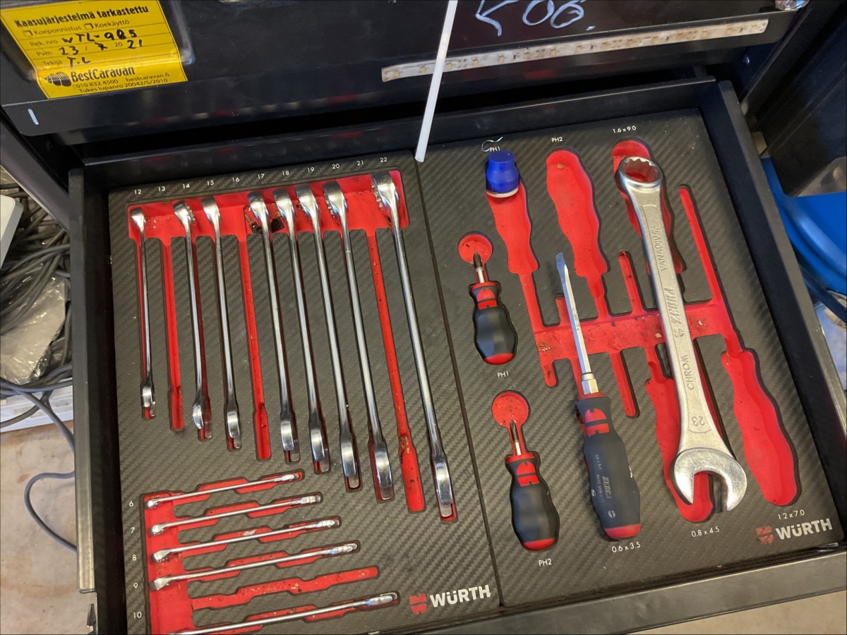 Myyntikohteet » 10. Best-Caravan Oy:n konkurssipesä, OULU (1824257-7), 28.03.2026 » K06. Wurth työkaluvaunu työkaluineen / tarvikkeineen