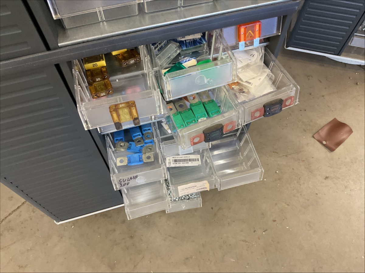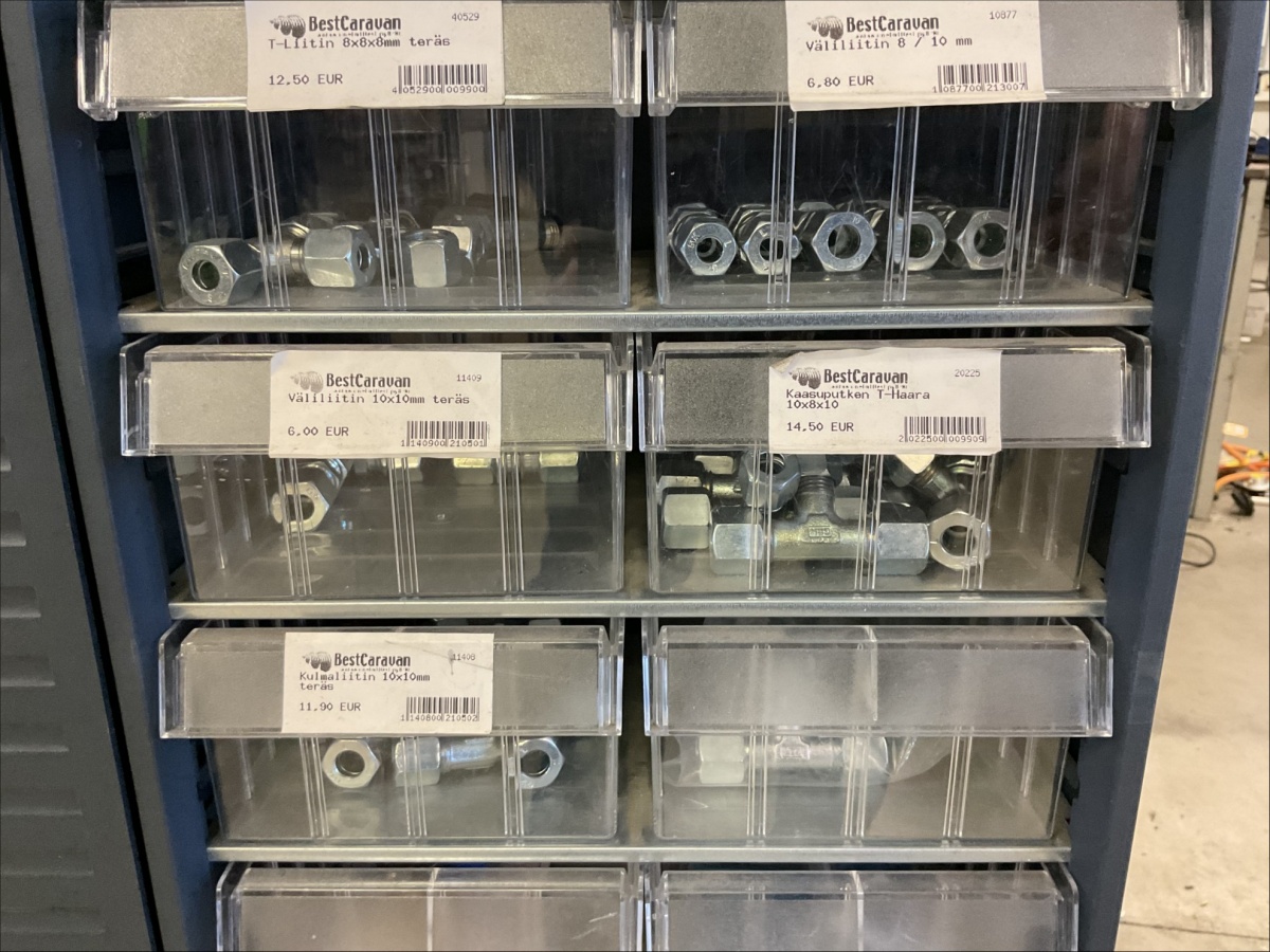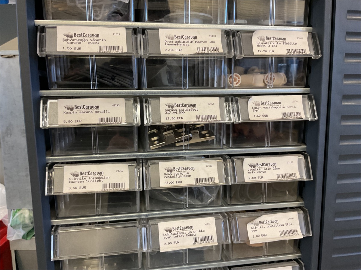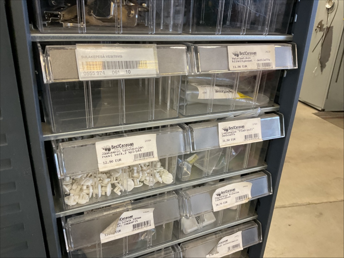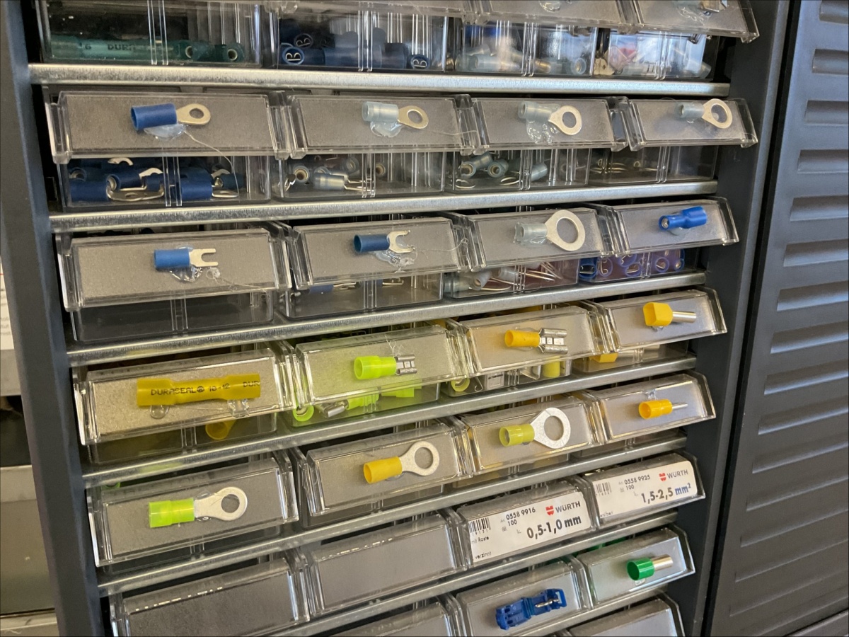Myyntikohteet » 10. Best-Caravan Oy:n konkurssipesä, OULU (1824257-7), 28.03.2026 » K33. Pyörivä laatikostoteline tarvikkeineen (letkukiristimet, sulakkeet, liittimet ym.)