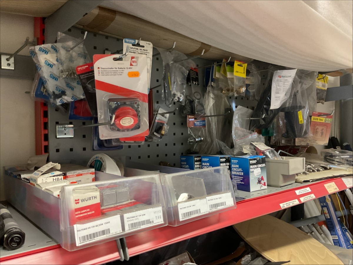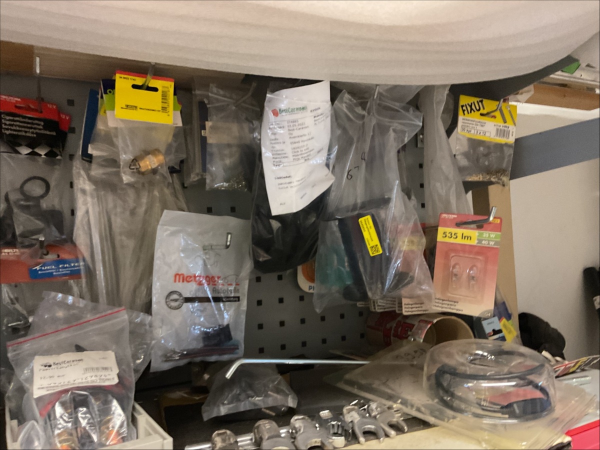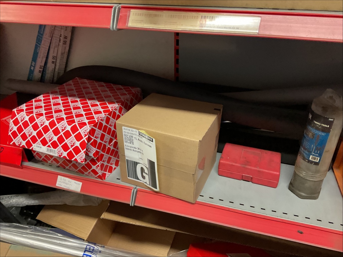 Myyntikohteet » 11. Best-Caravan Oy:n konkurssipesä, OULU (1824257-7), 28.03.2026 » K44. Hyllytasoilla olevat varaosat, työkalut ja tarvikkeet + kulmassa olevat loisteputket