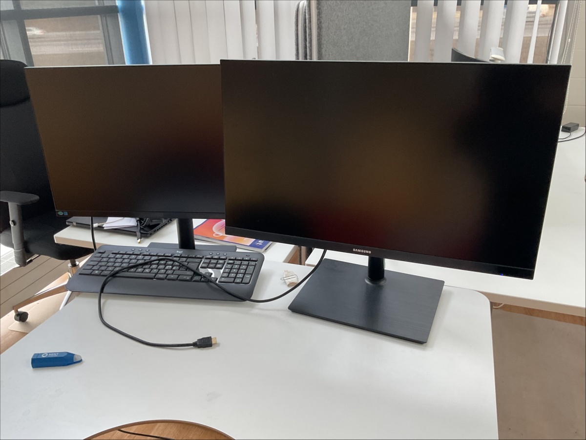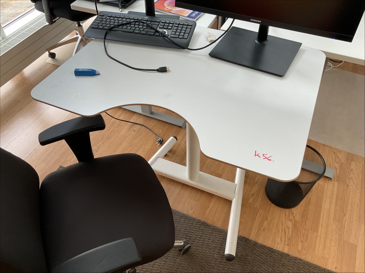 Myyntikohteet » 11. Best-Caravan Oy:n konkurssipesä, OULU (1824257-7), 28.03.2026 » K56. Toimistopöytä, näytöt 2 kappaletta, näppäimistö, toimistotuoli