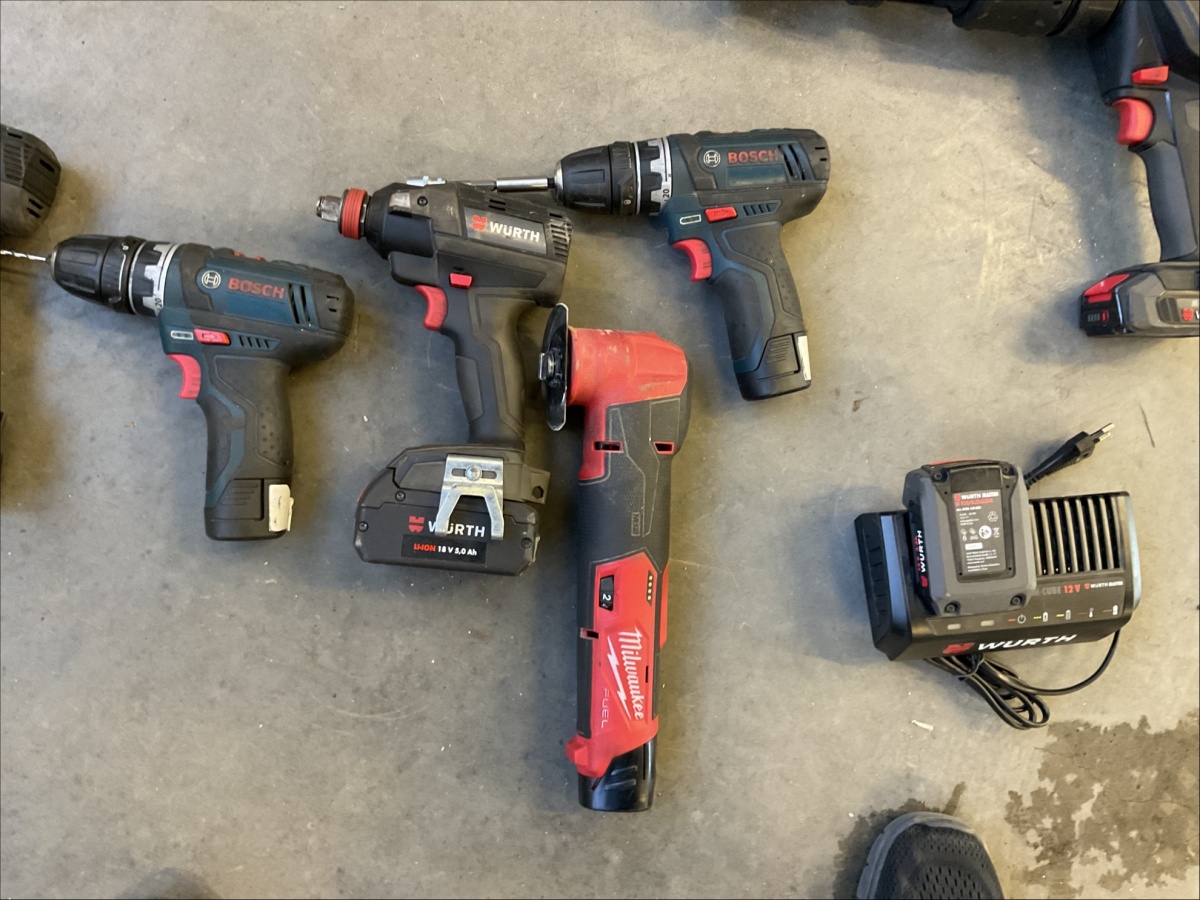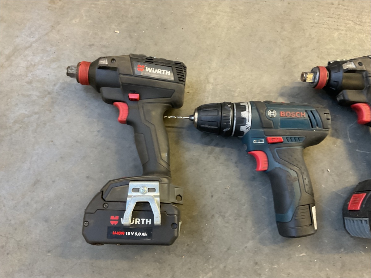 Myyntikohteet » 12. Best-Caravan Oy:n konkurssipesä, OULU (1824257-7), 29.03.2026 » K78. Akkutyökalut yhteensä kappaletta (Wurth, Bosch ja Milwaukee), säilytyskaappi