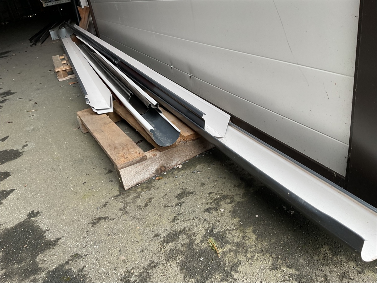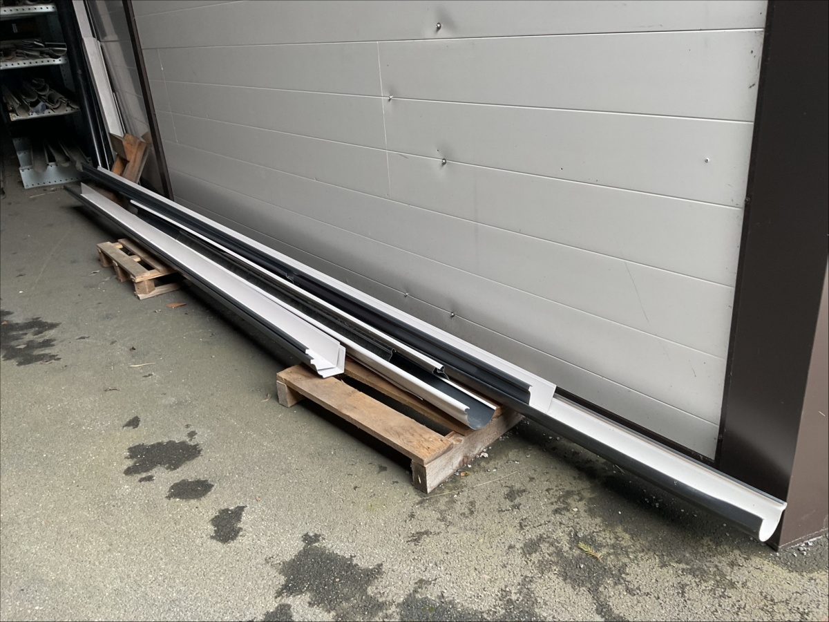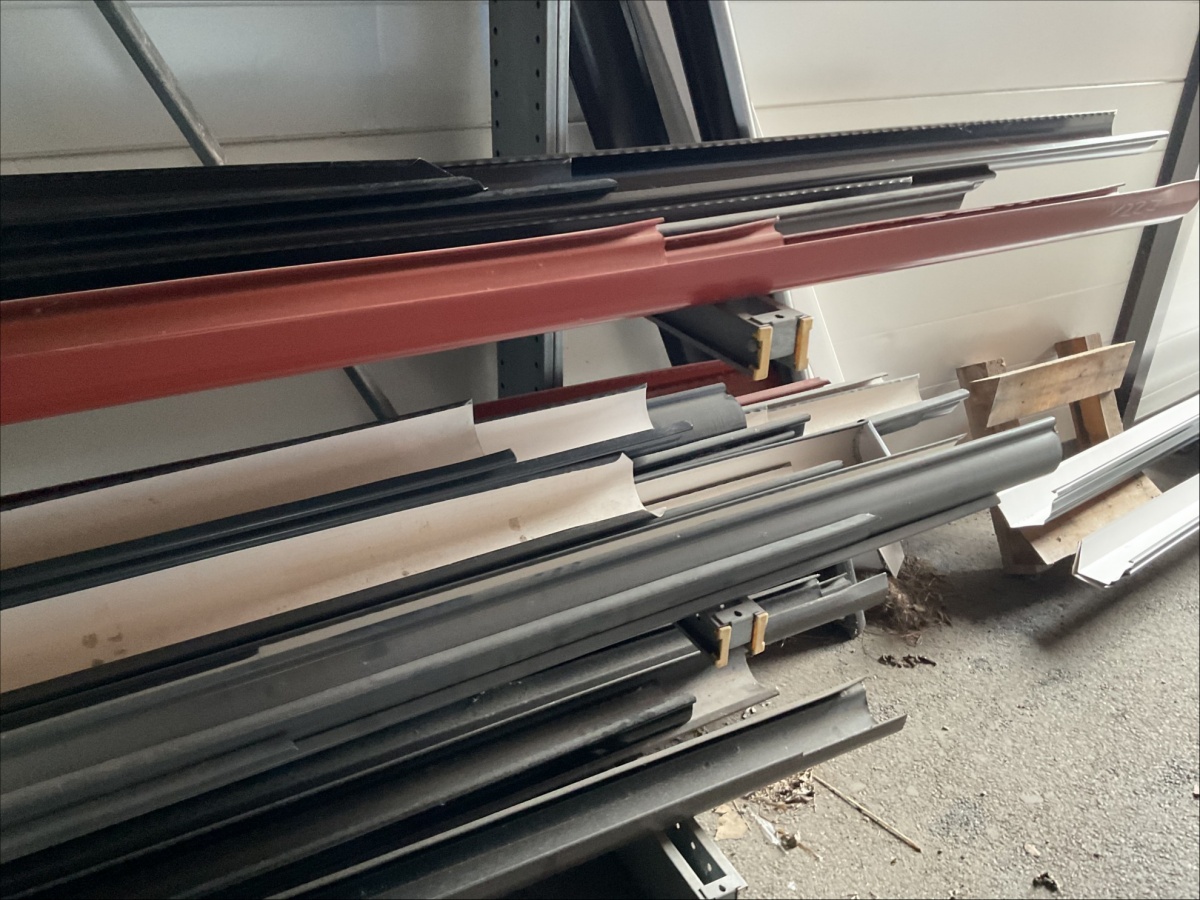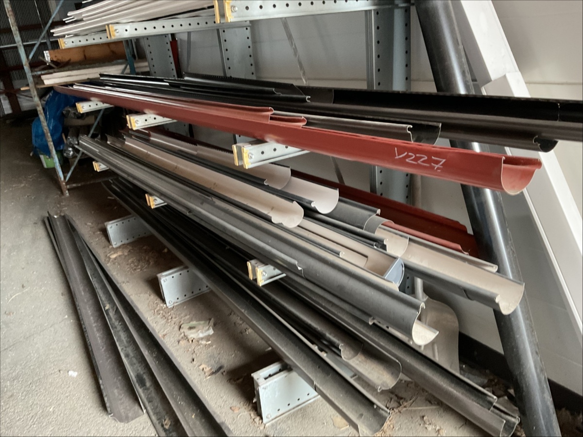 Myyntikohteet » 13. IV-Pelti Luuri Oy:n konkurssipesä, LOIMAA (1637489-1), 04.04.2026 » V227. Oksahyllyllä ja lavalla olevat sadevesikourut ja peltisillat ym. (eri kokoisia)