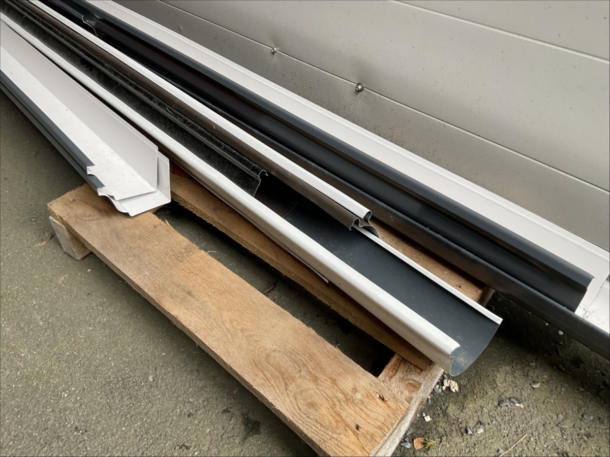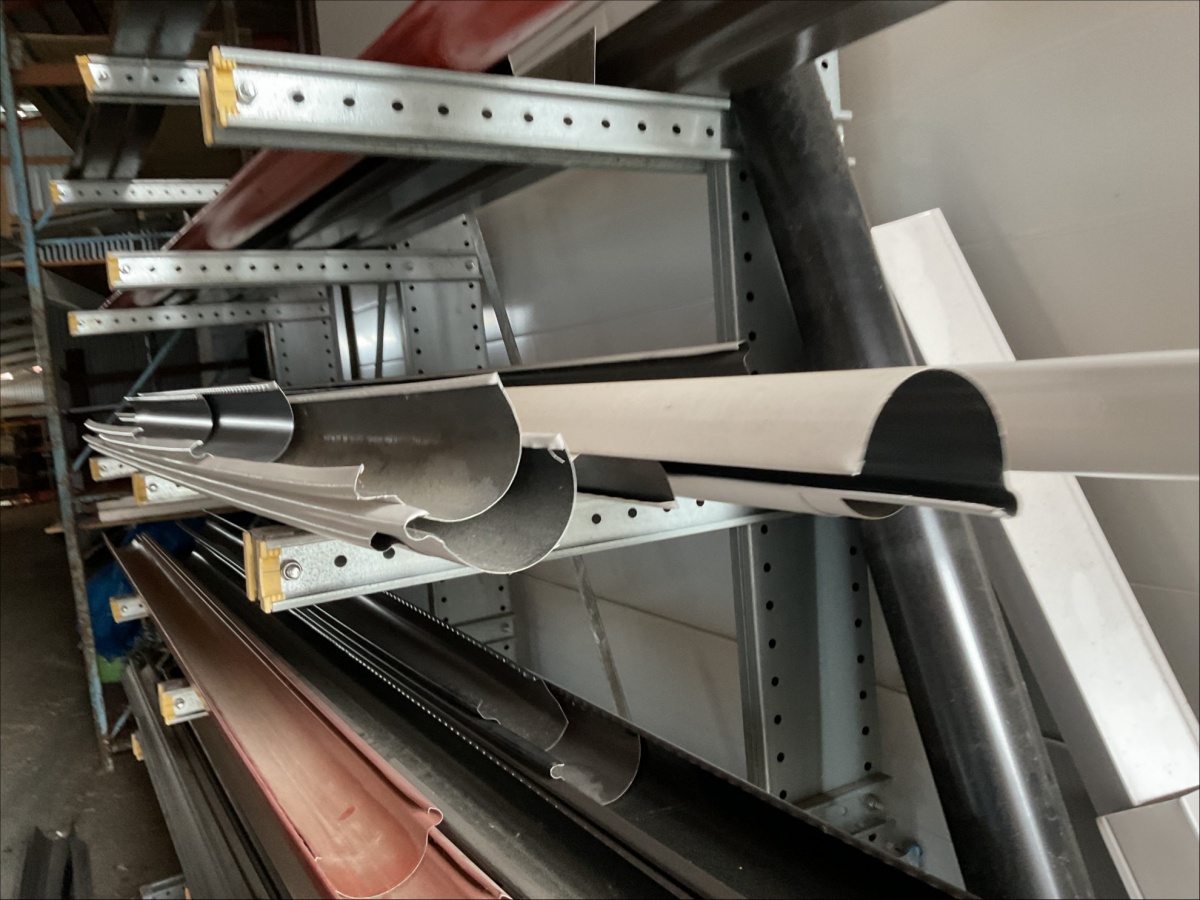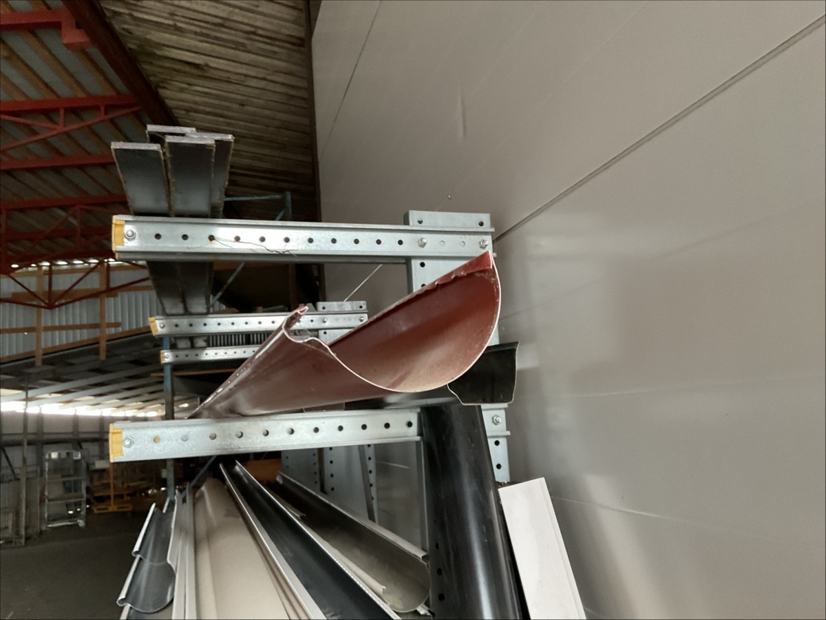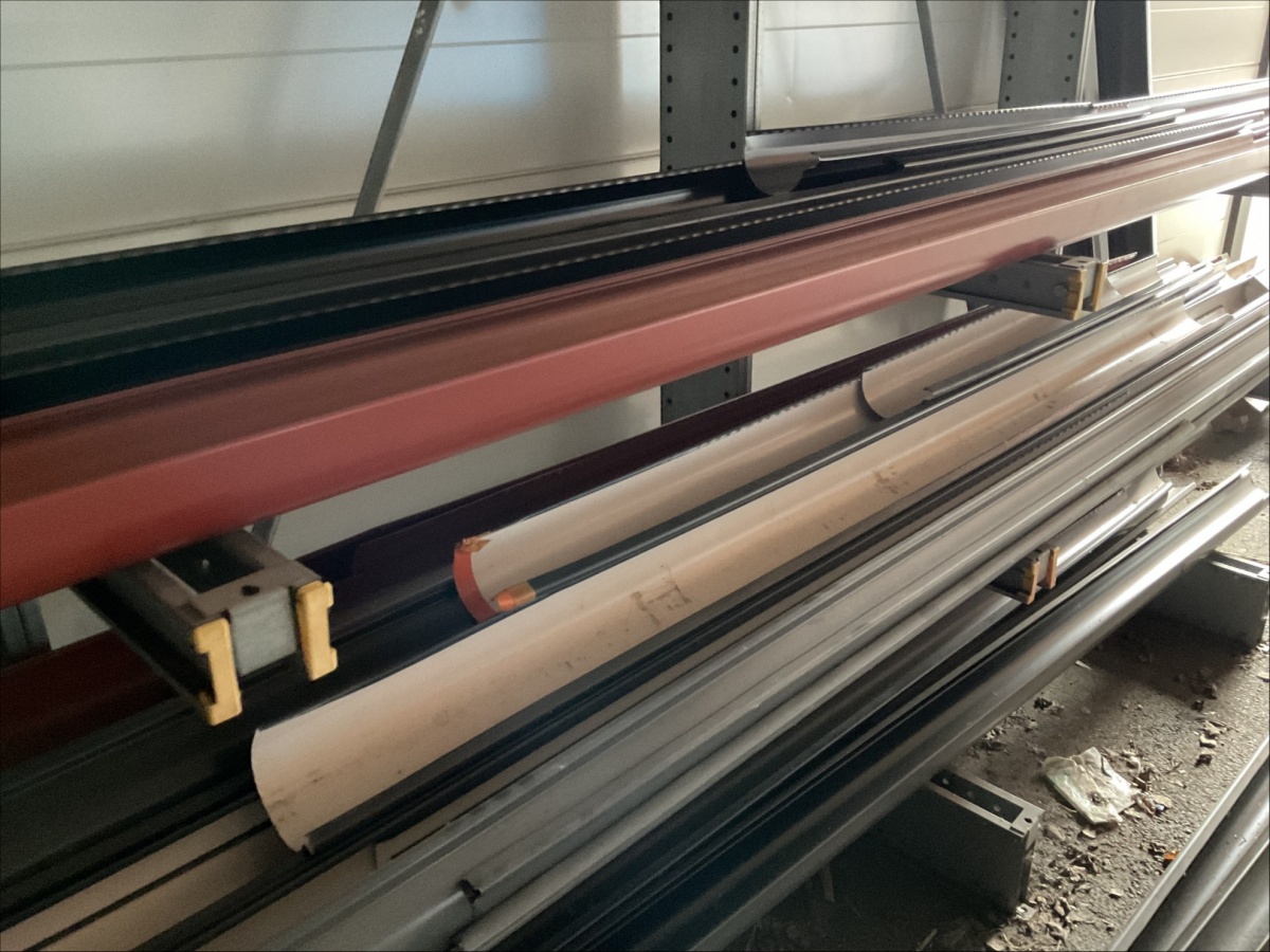 Myyntikohteet » 13. IV-Pelti Luuri Oy:n konkurssipesä, LOIMAA (1637489-1), 04.04.2026 » V227. Oksahyllyllä ja lavalla olevat sadevesikourut ja peltisillat ym. (eri kokoisia)