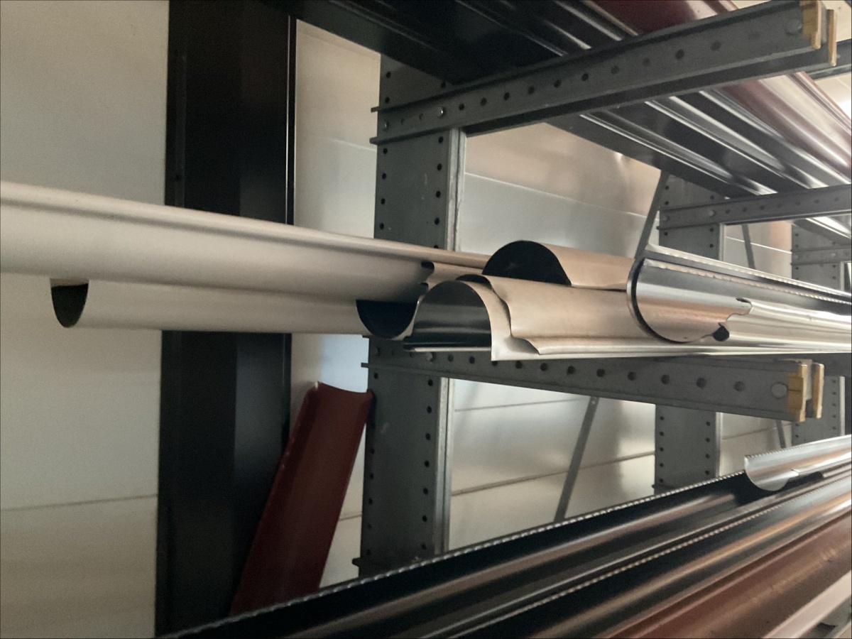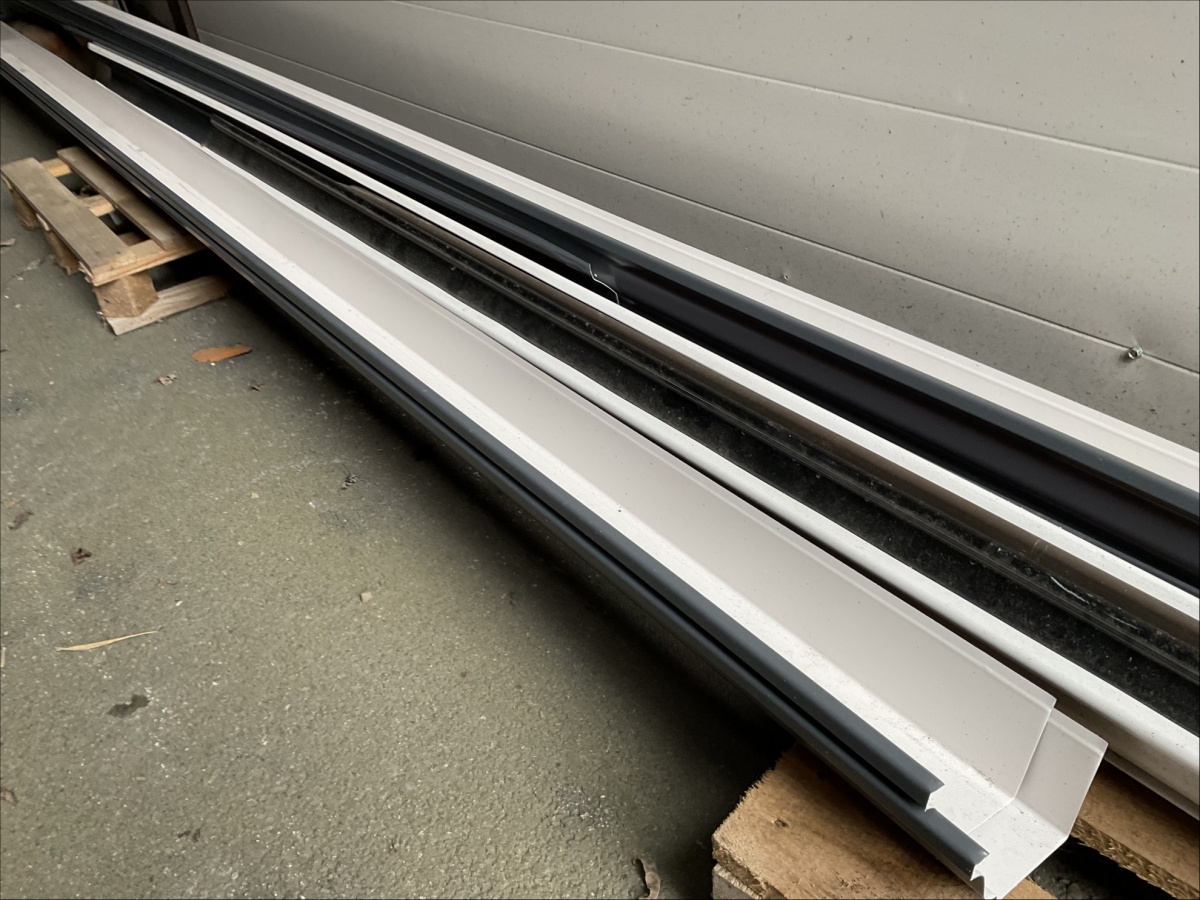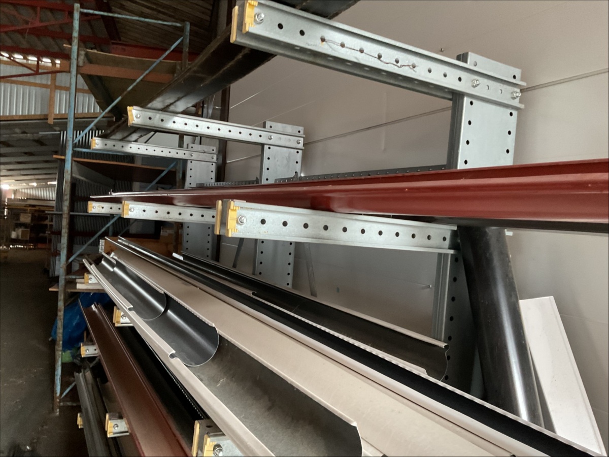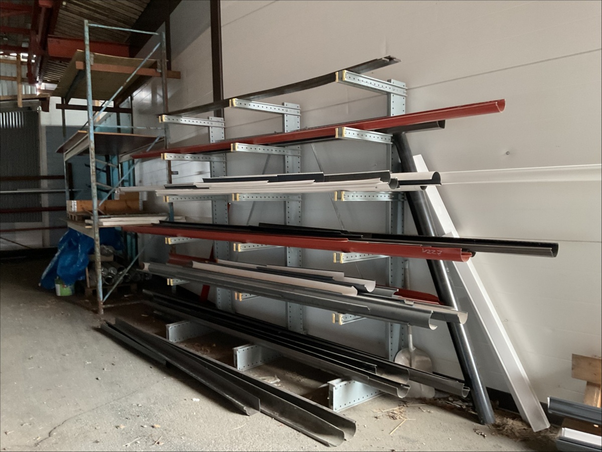 Myyntikohteet » 13. IV-Pelti Luuri Oy:n konkurssipesä, LOIMAA (1637489-1), 04.04.2026 » V227. Oksahyllyllä ja lavalla olevat sadevesikourut ja peltisillat ym. (eri kokoisia)