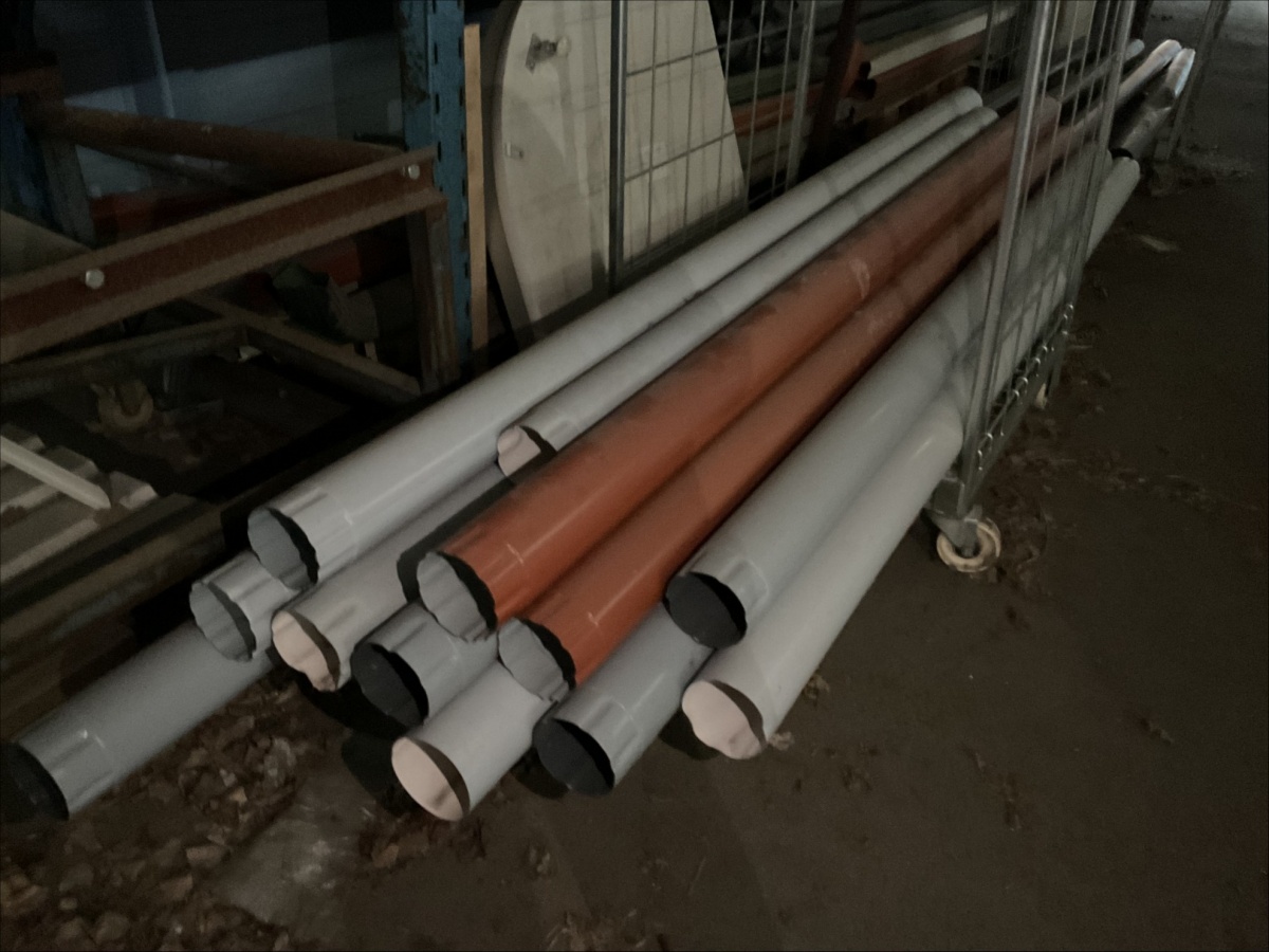 Myyntikohteet » 13. IV-Pelti Luuri Oy:n konkurssipesä, LOIMAA (1637489-1), 04.04.2026 » V229. Kahdessa rullakossa ja alimmalla hyllytasolla olevat syöksyputket (pyöreitä ja kantikkaita / eri mittaisia)