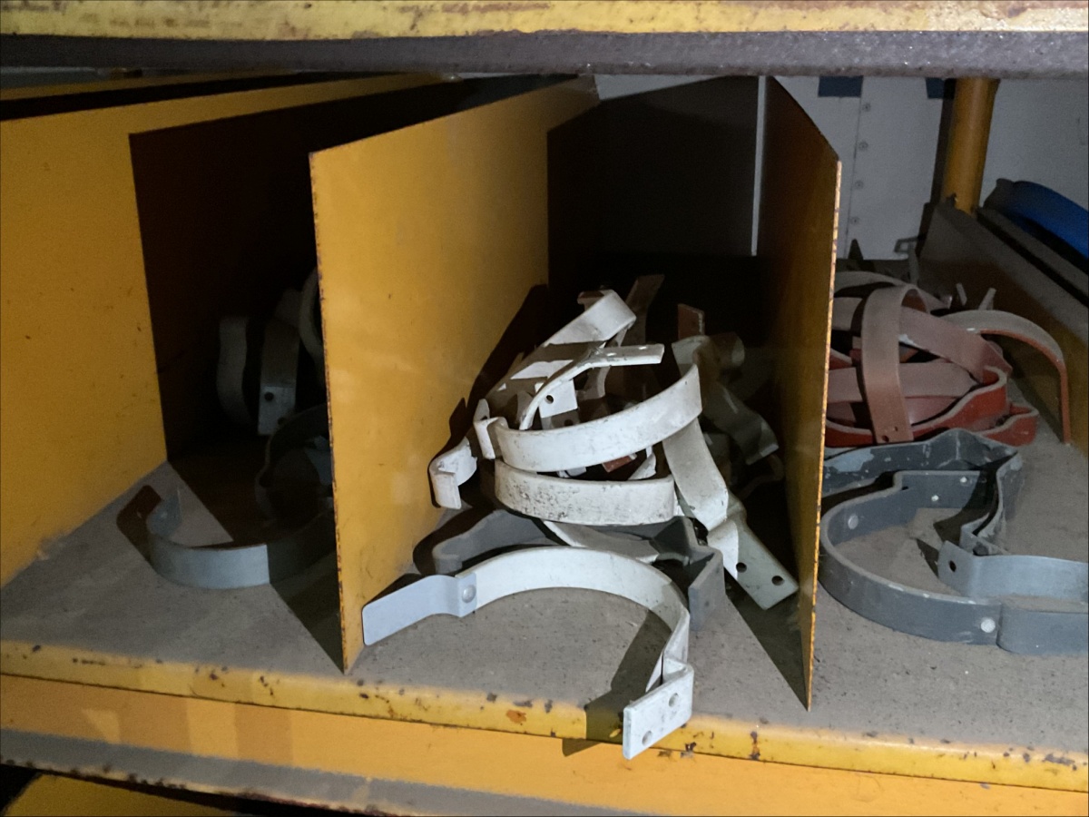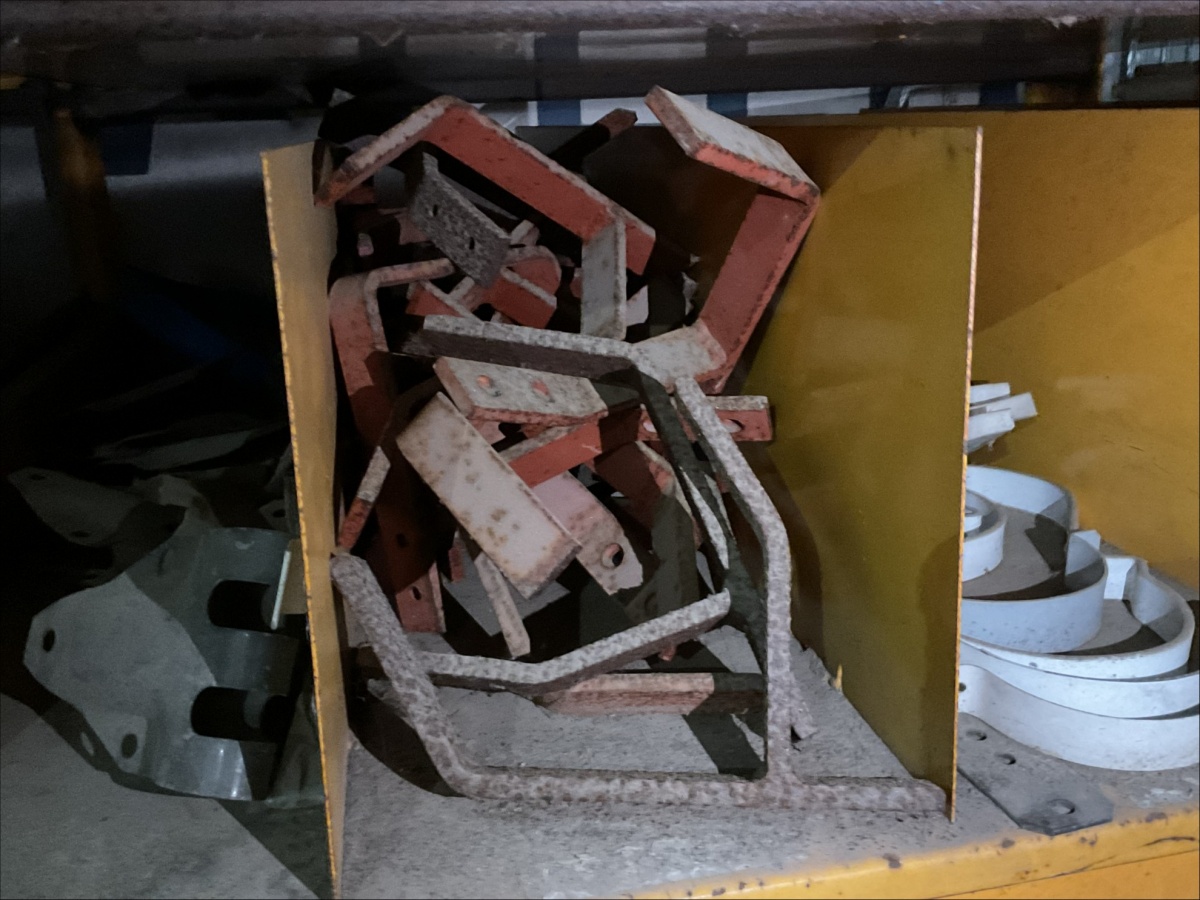 Myyntikohteet » 13. IV-Pelti Luuri Oy:n konkurssipesä, LOIMAA (1637489-1), 04.04.2026 » V231. Keltaisessa lokerikkohyllyssä olevat sadevesikourujen kannakkeet