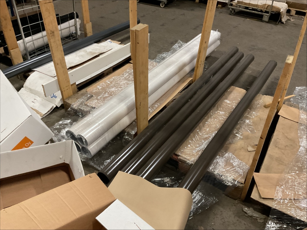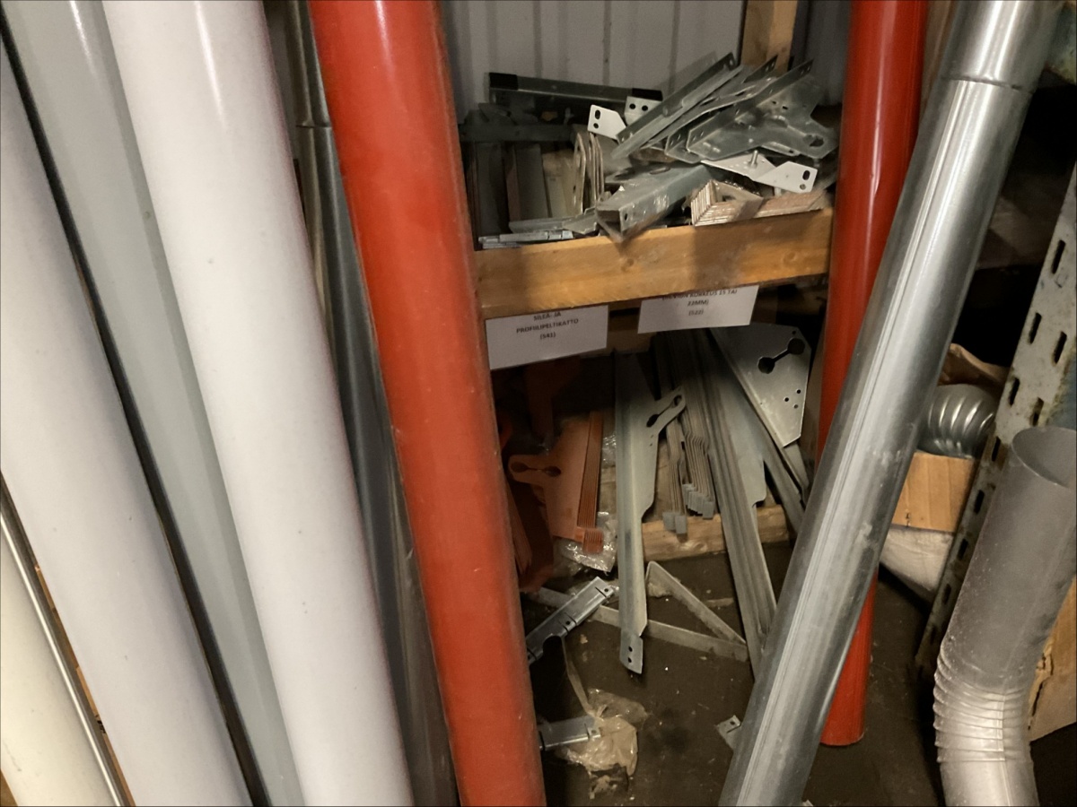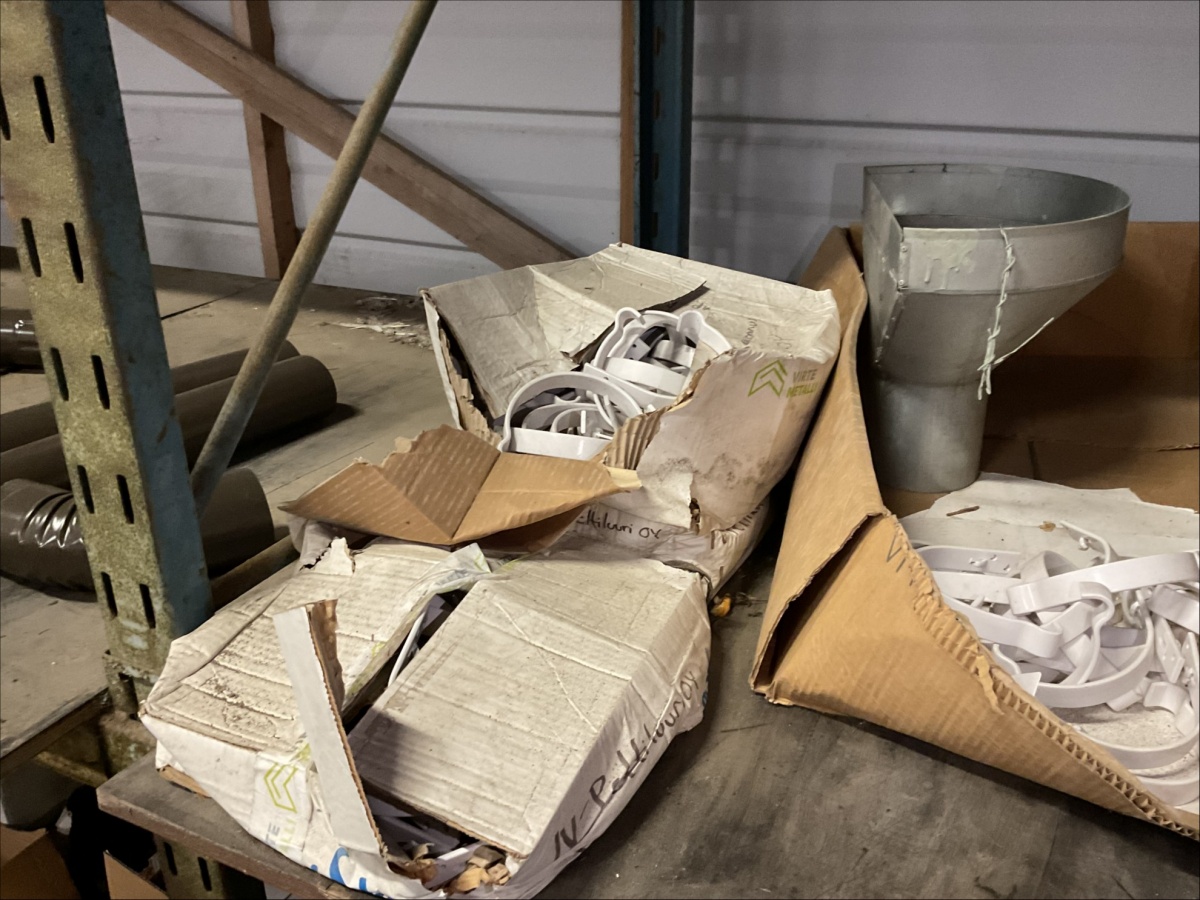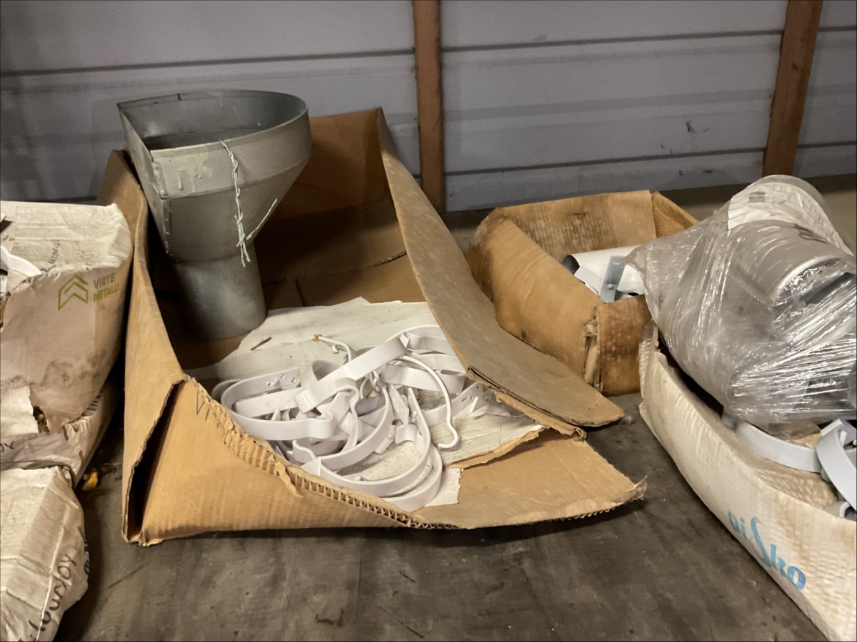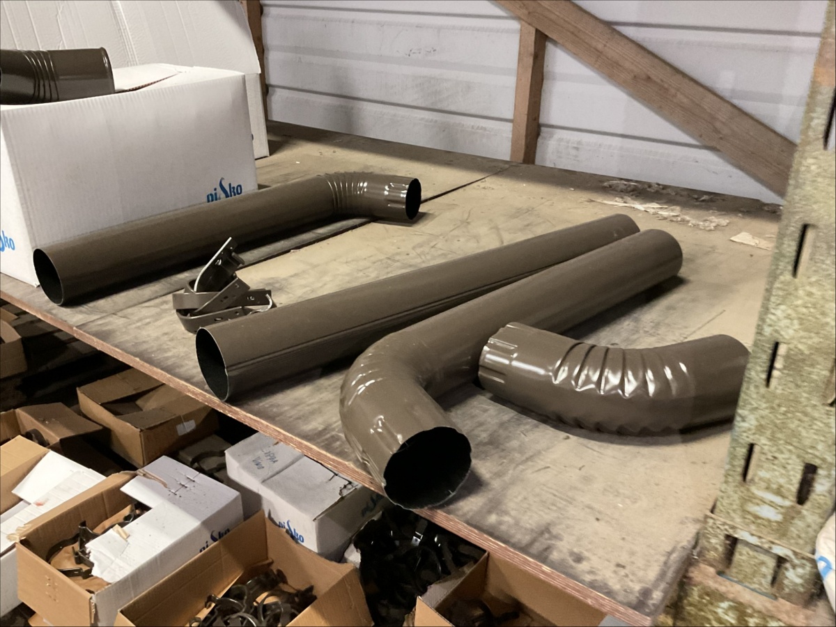 Myyntikohteet » 13. IV-Pelti Luuri Oy:n konkurssipesä, LOIMAA (1637489-1), 04.04.2026 » V233. Varastohuoneessa olevat syöksyputket (eri mittaisia), kannakkeet, kiilapuut, kaltevuuden säätölevyt ym. (SUURI MÄÄRÄ)