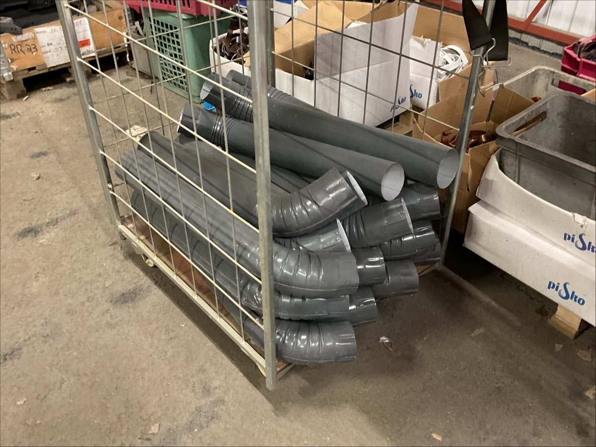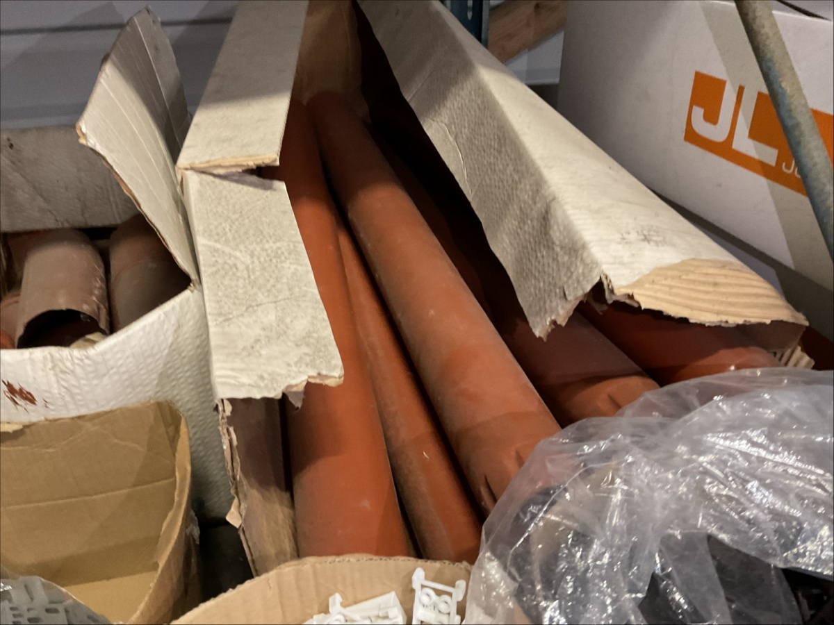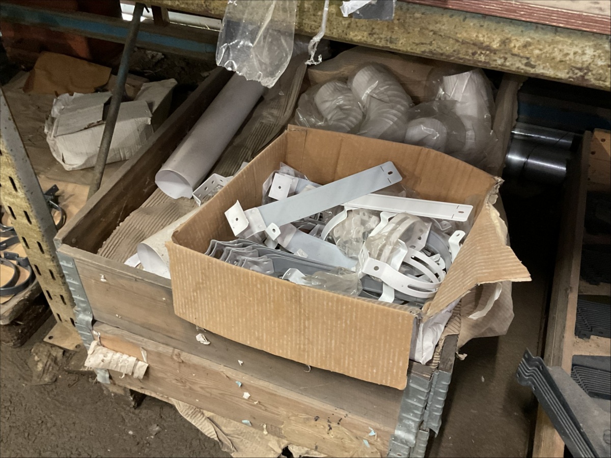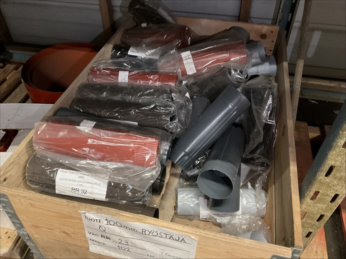 Myyntikohteet » 13. IV-Pelti Luuri Oy:n konkurssipesä, LOIMAA (1637489-1), 04.04.2026 » V233. Varastohuoneessa olevat syöksyputket (eri mittaisia), kannakkeet, kiilapuut, kaltevuuden säätölevyt ym. (SUURI MÄÄRÄ)
