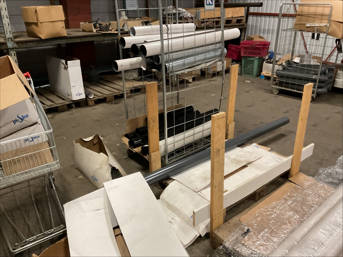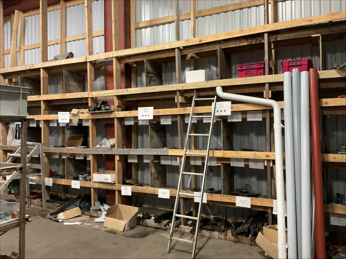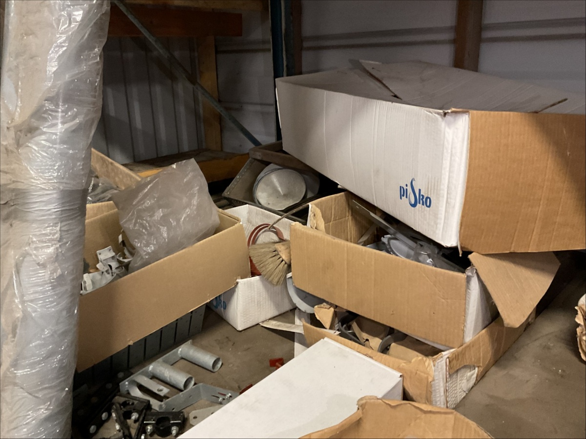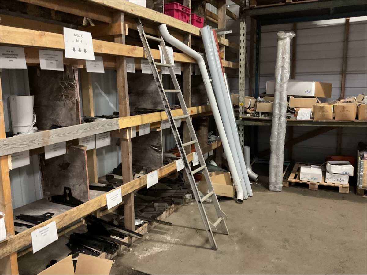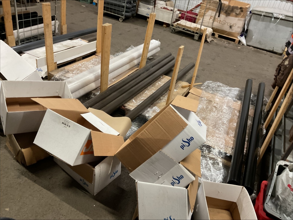 Myyntikohteet » 13. IV-Pelti Luuri Oy:n konkurssipesä, LOIMAA (1637489-1), 04.04.2026 » V233. Varastohuoneessa olevat syöksyputket (eri mittaisia), kannakkeet, kiilapuut, kaltevuuden säätölevyt ym. (SUURI MÄÄRÄ)