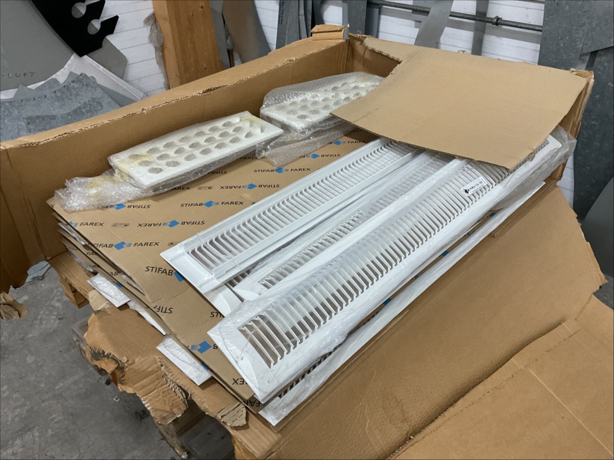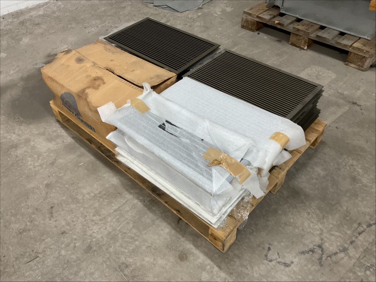 Myyntikohteet » 13. IV-Pelti Luuri Oy:n konkurssipesä, LOIMAA (1637489-1), 04.04.2026 » V247. Lavalla olevat IV ritilät ja Chiller Grand Vari 100 L 2 CV2 C2.5 C10 KP P 15 puhallinkoventtori