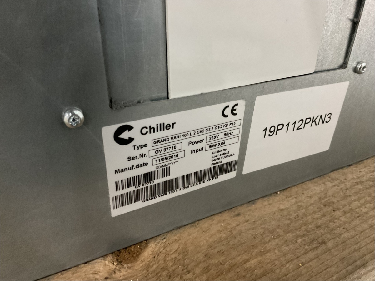 Lavalla olevat IV ritilät ja Chiller Grand Vari 100 L 2 CV2 C2.5 C10 KP P 15 puhallinkoventtori