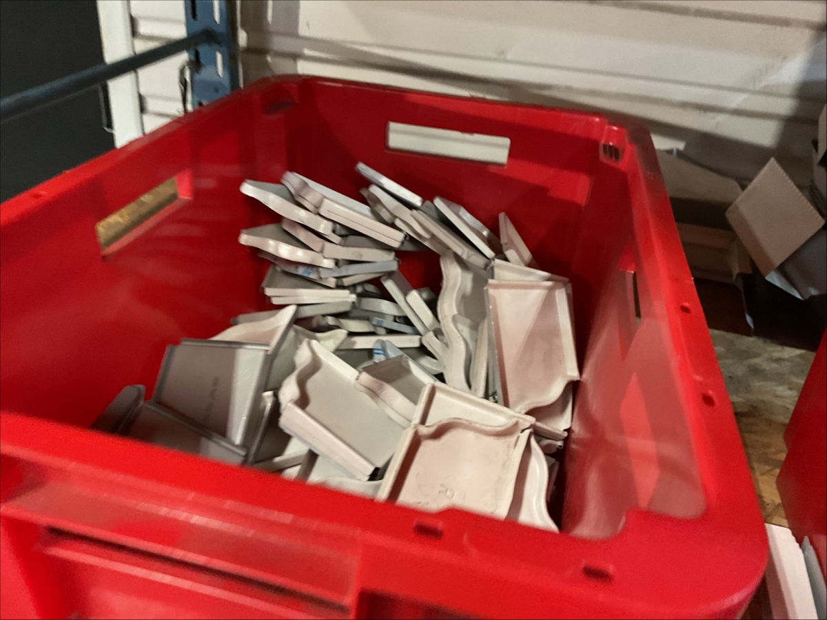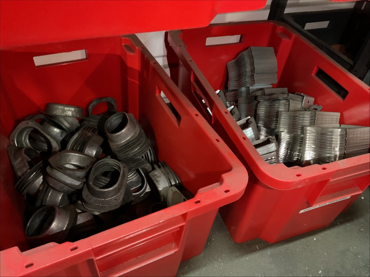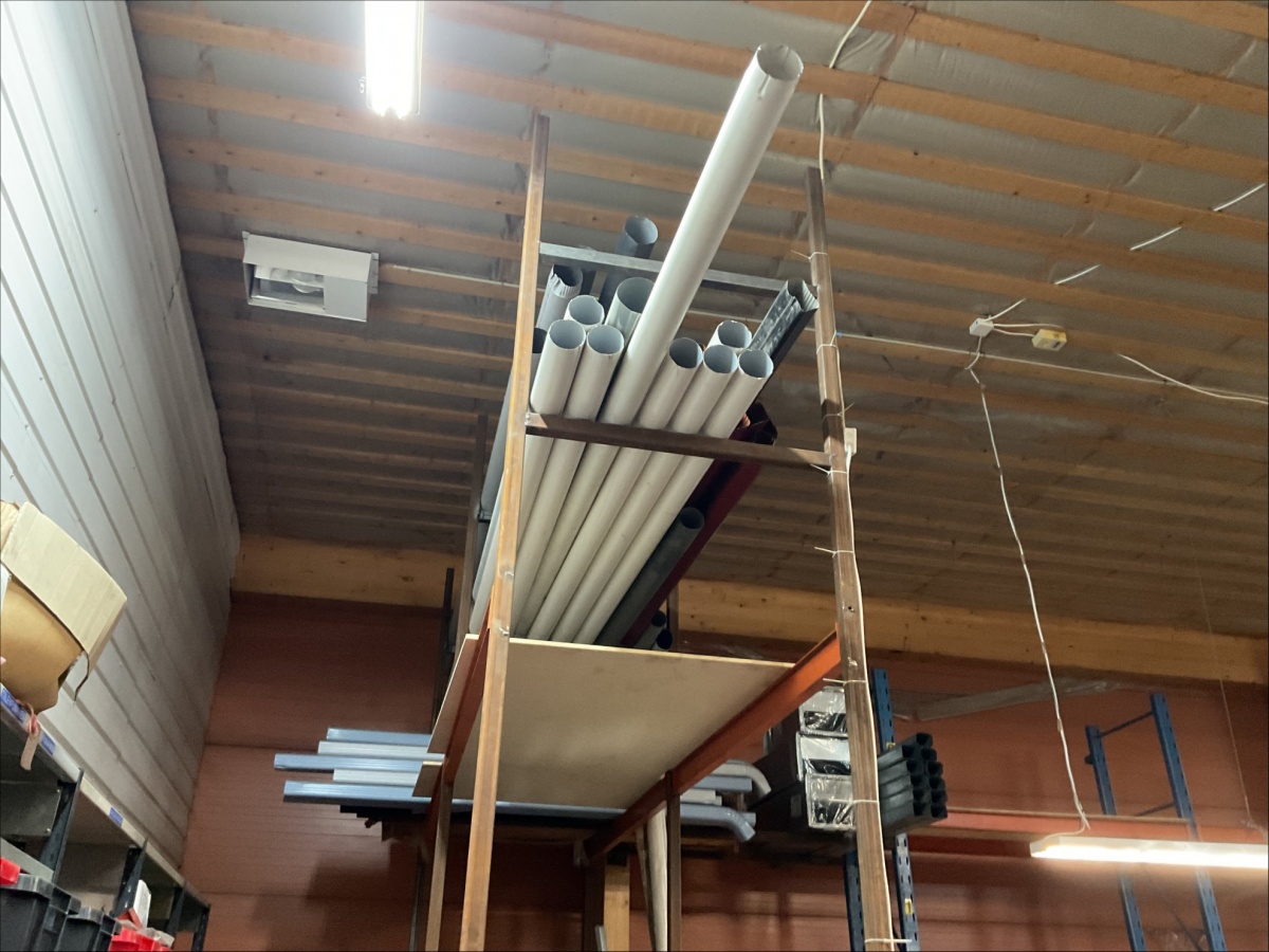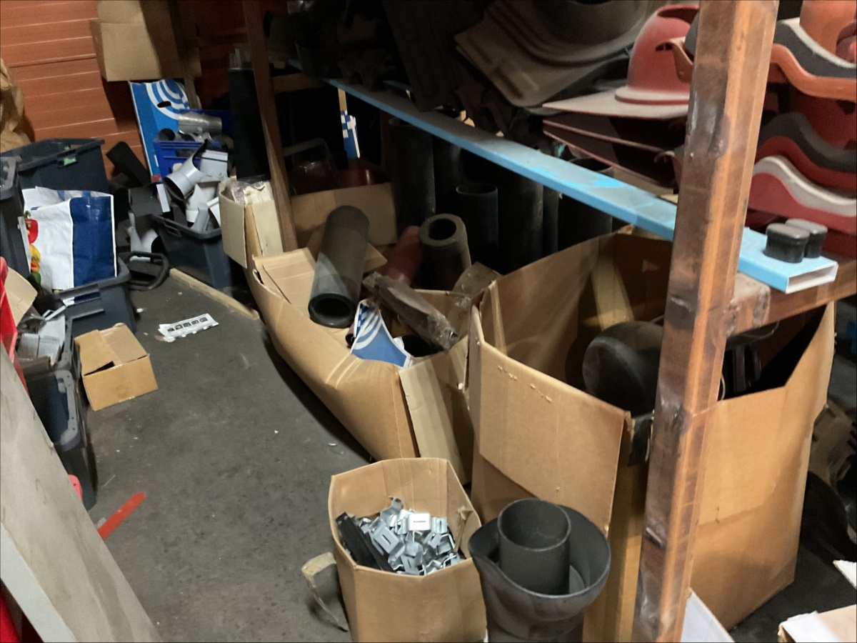Myyntikohteet » 13. IV-Pelti Luuri Oy:n konkurssipesä, LOIMAA (1637489-1), 04.04.2026 » V249. Hyllyissä olevat kaulukset, liukulähdöt, kulmikkaat päätylaput, liitospannat, syöksyputket ylähyllyllä, pieni määrä IV osia