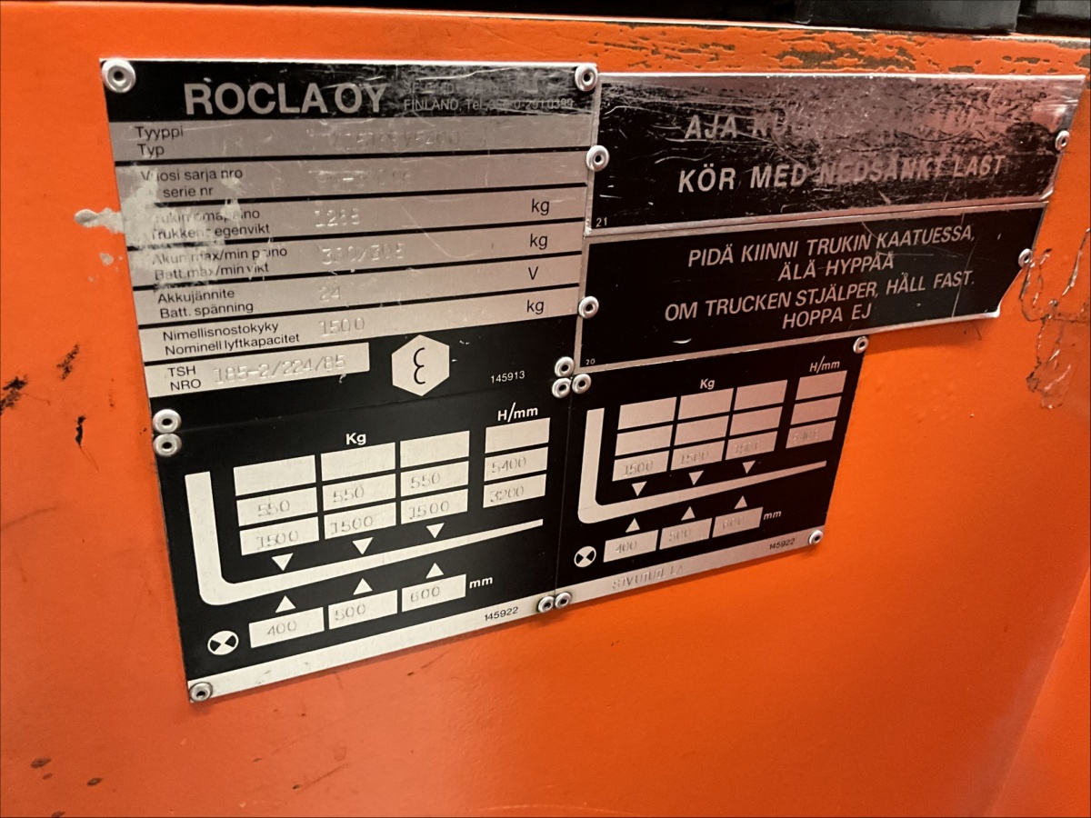 Myyntikohteet » 18. Indoor Group Oy:n konkurssipesä, HÄMEENLINNA (1512332-9), 04.04.2026 » H002. Varastotrukki Rocla + laturi (Huom! Luovutetaan noutopäivänä viimeisenä.)