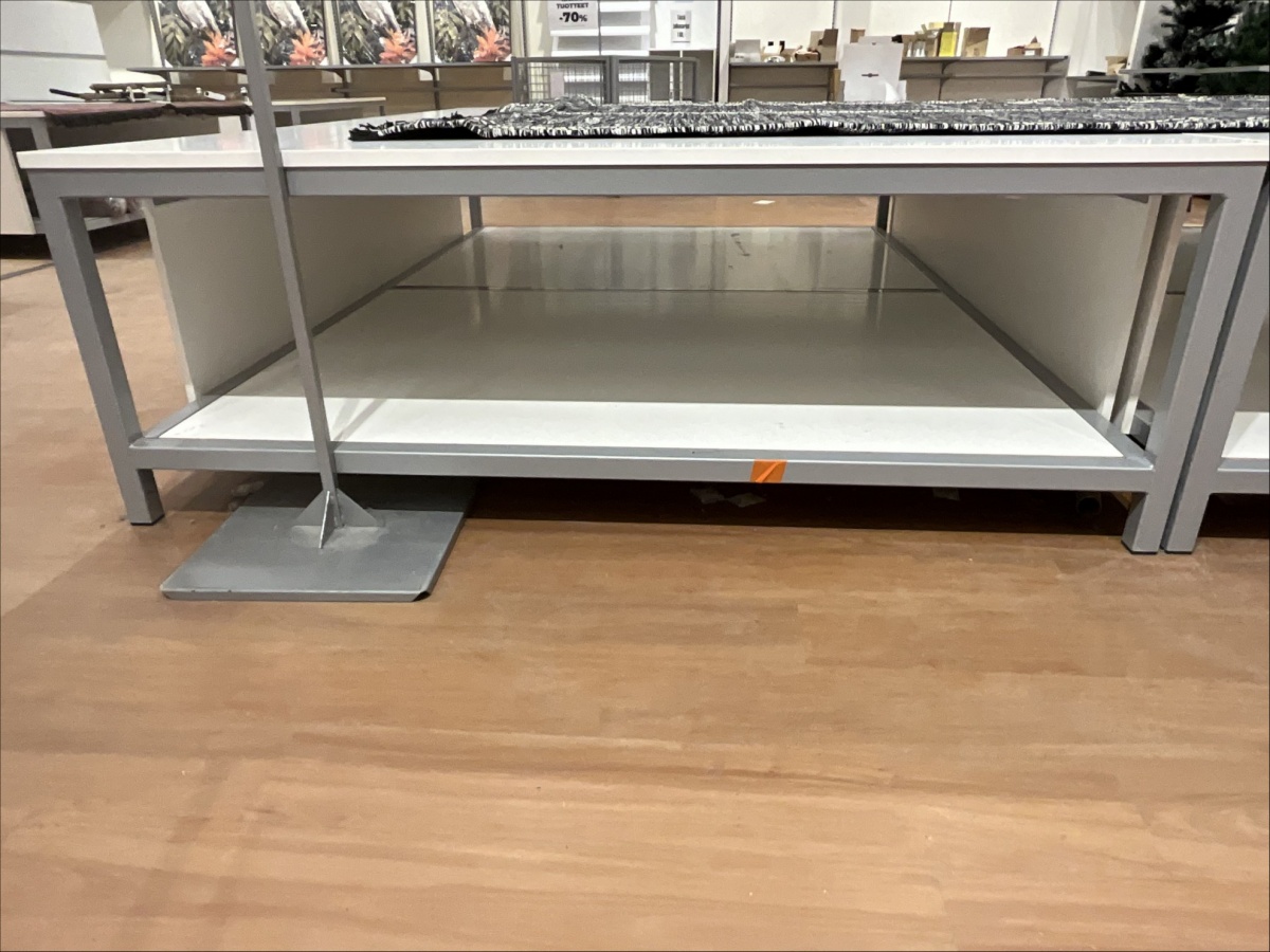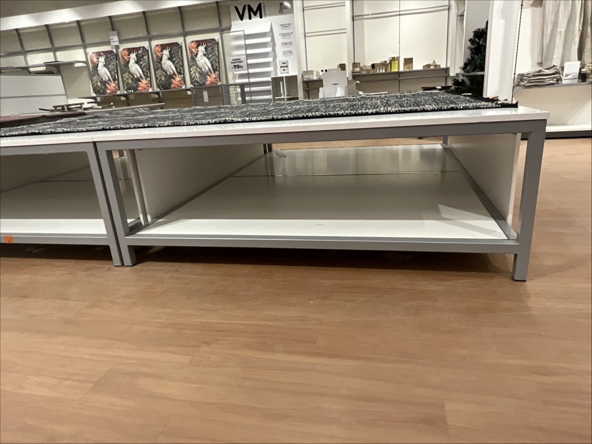 Myyntikohteet » 18. Indoor Group Oy:n konkurssipesä, HÄMEENLINNA (1512332-9), 04.04.2026 » H04. Mattojen myyntipöydät 2 kappaletta, metallirunko