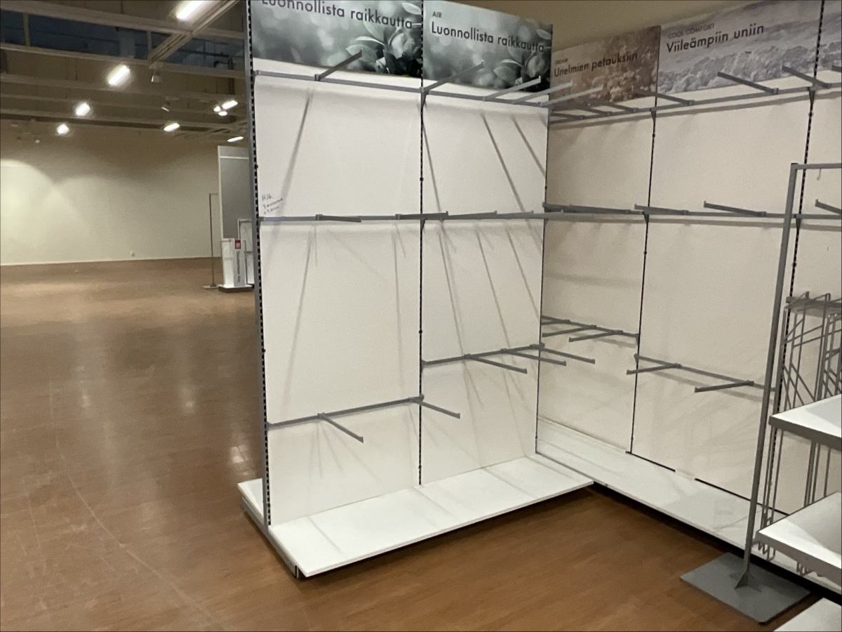 Myyntikohteet » 18. Indoor Group Oy:n konkurssipesä, HÄMEENLINNA (1512332-9), 04.04.2026 » H16. Myymälähyllyt yhteensä 7-hyllyvälikköä + 1 hylly
