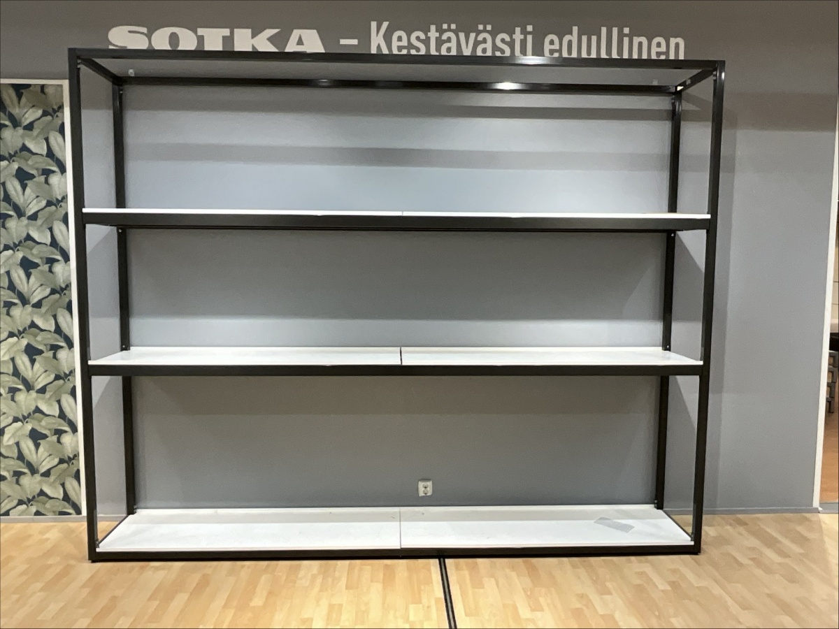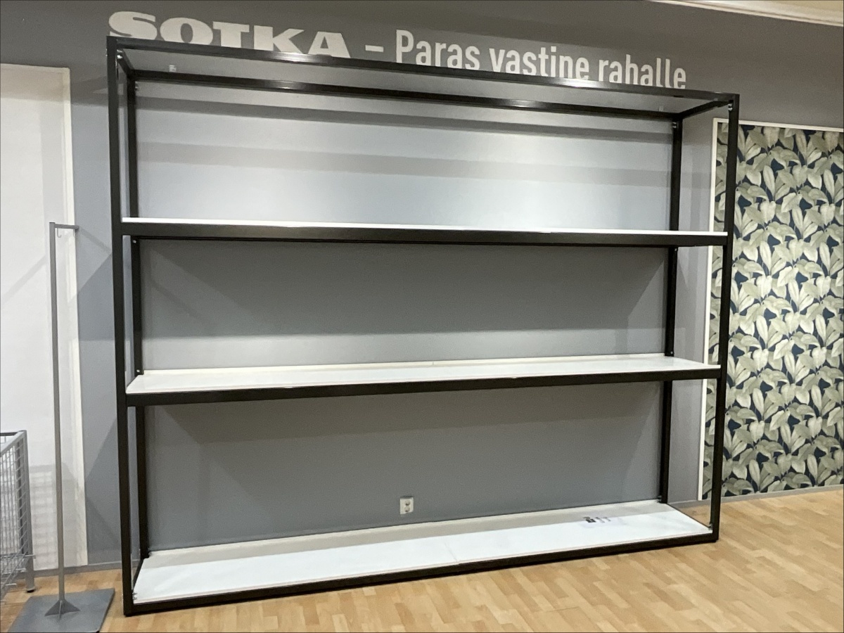 Myyntikohteet » 18. Indoor Group Oy:n konkurssipesä, HÄMEENLINNA (1512332-9), 04.04.2026 » H32. Metalliset myymälähyllyt 3 kappaletta (2700 x 3400 mm)