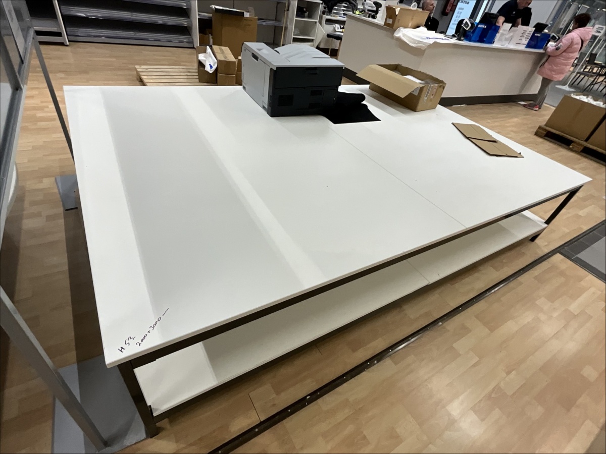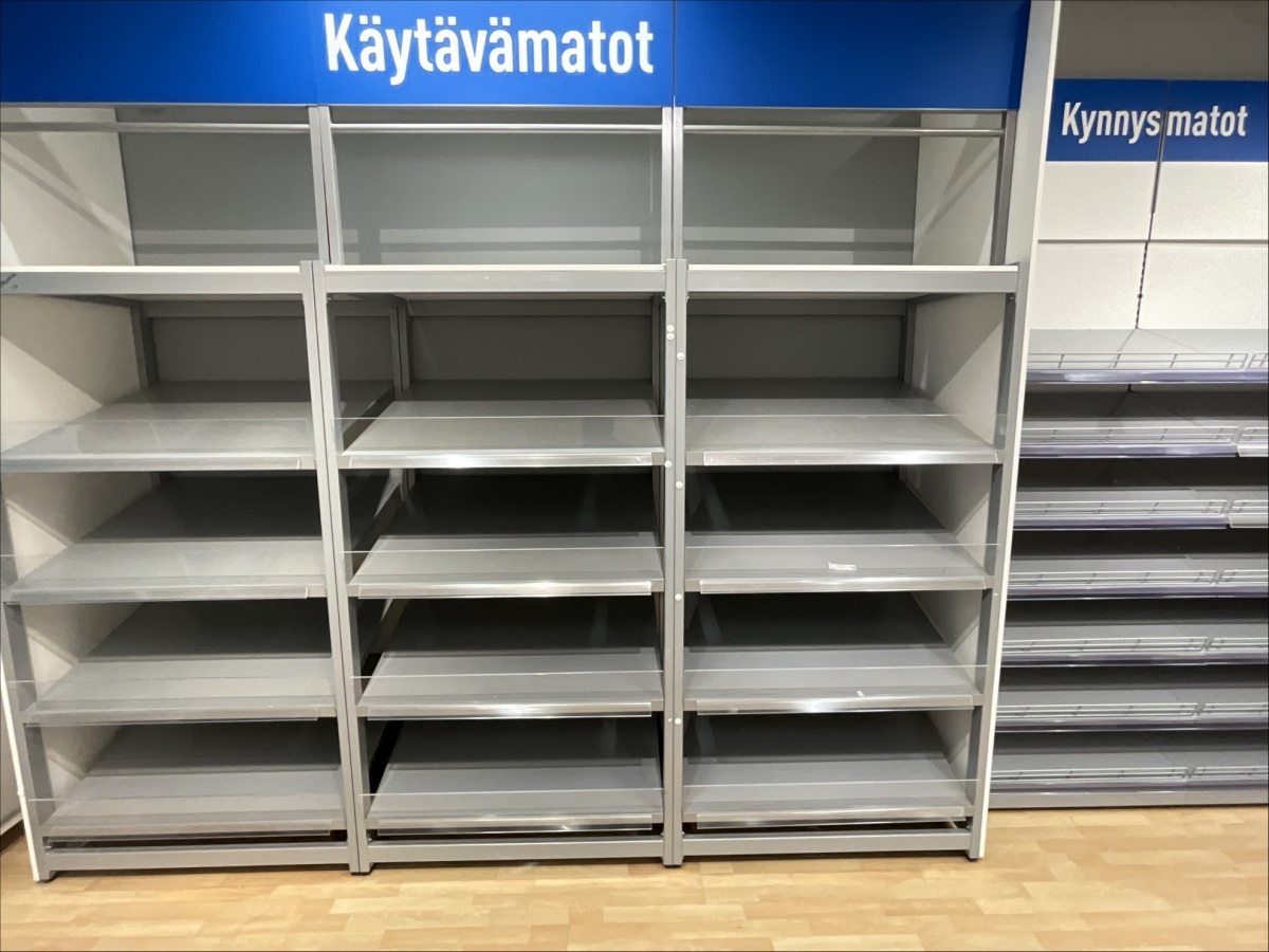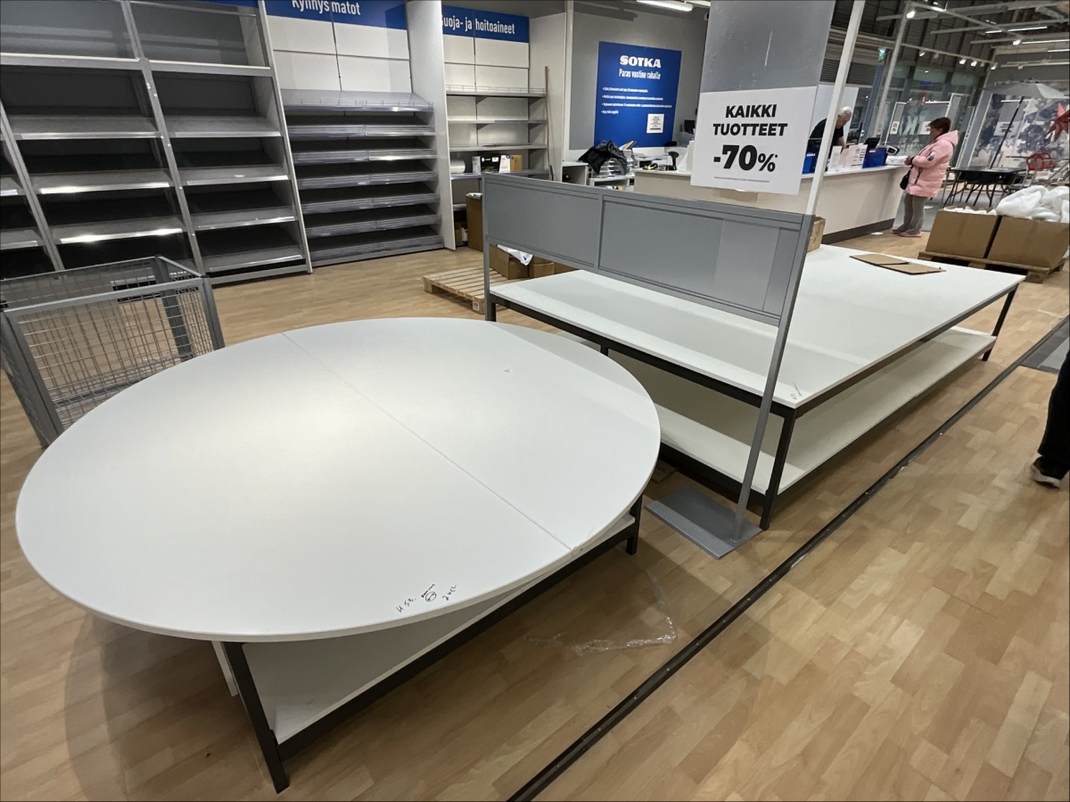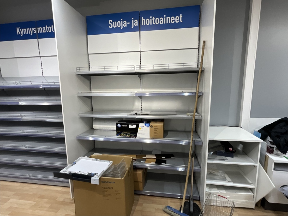Myyntikohteet » 19. Indoor Group Oy:n konkurssipesä, HÄMEENLINNA (1512332-9), 05.04.2026 » H53. Myymälähyllyt yhteensä 7-hyllyvälikköä, mattojen myyntipöydät 2 kappaletta