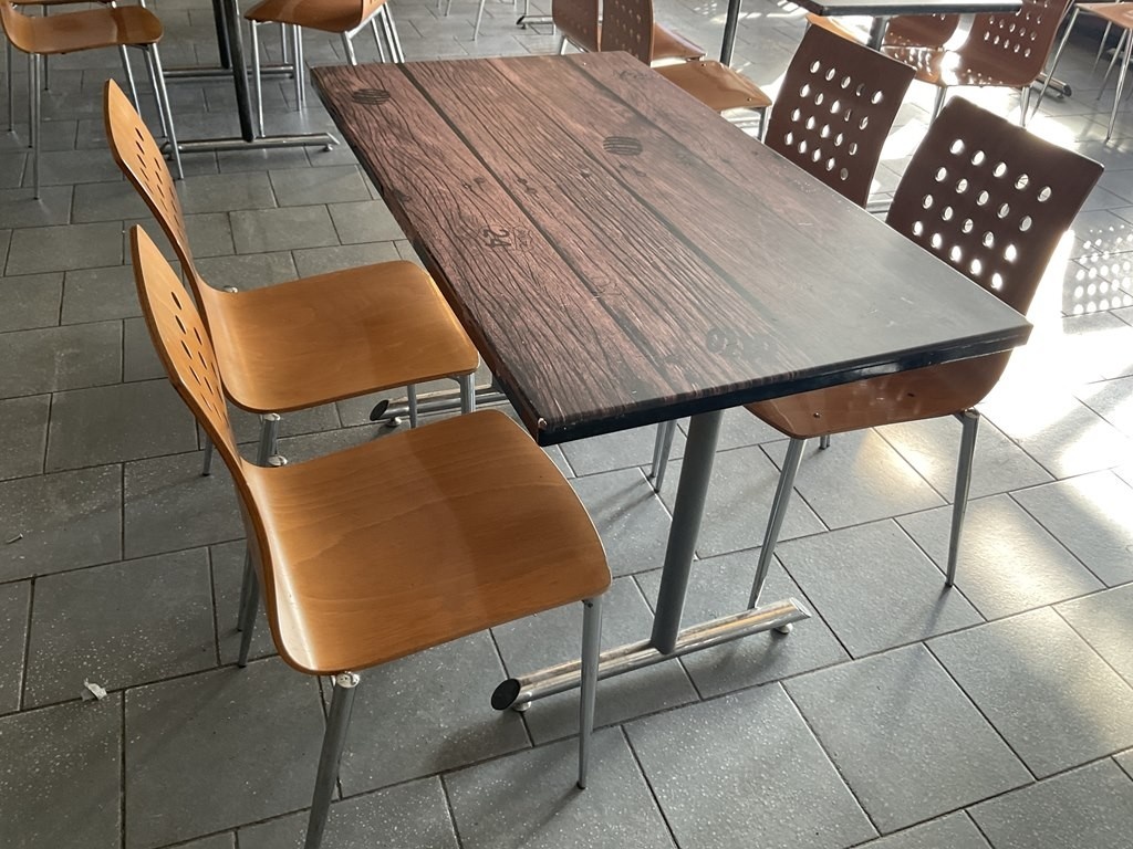 Myyntikohteet » 3. Paimelan Ranch Oy:n konkurssipesä, VESIVEHMAA (2480918-9), 05.04.2026 » A36. Kivigraniitista valmistettu ravintola-/kahvilapöytä + tuolit 4kpl