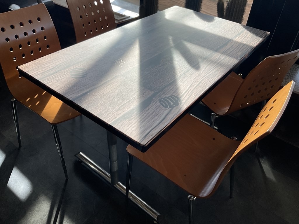 Myyntikohteet » 3. Paimelan Ranch Oy:n konkurssipesä, VESIVEHMAA (2480918-9), 05.04.2026 » A44. Kivigraniitista valmistettu ravintola-/kahvilapöytä + tuolit 4kpl