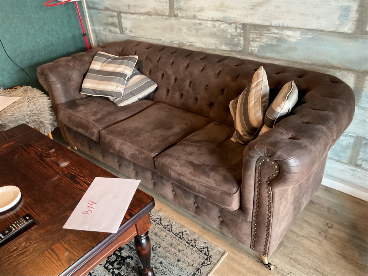 Myyntikohteet » 1. Public House Olkkari / ReSa Oy:n konkurssipesä, UUSIKAUPUNKI (3442164-7), 07.04.2026 » B14. Chesterfield-tyylinen sohva ja sohvapöytä