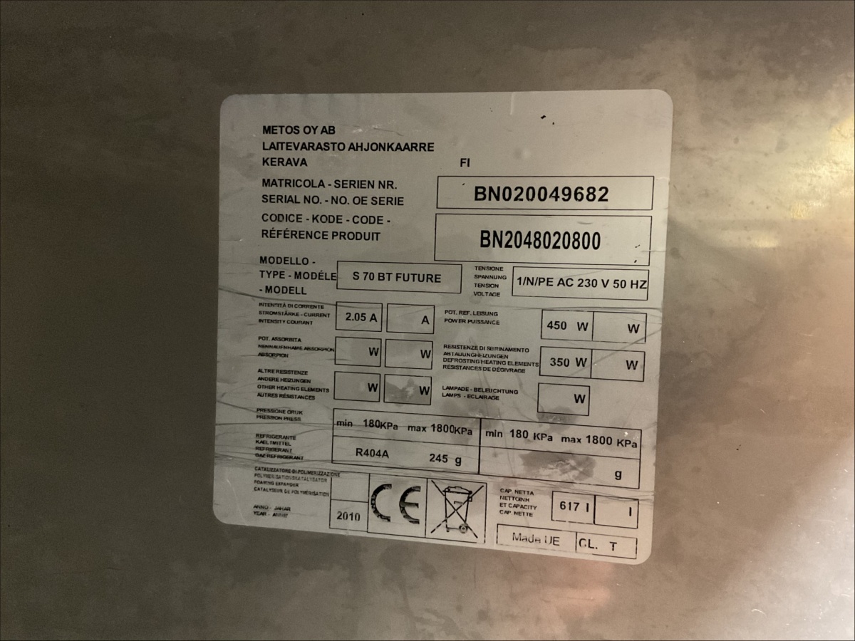 Myyntikohteet » 2. Captains Makasiini / ReSa Oy:n konkurssipesä, UUSIKAUPUNKI (3442164-7), 07.04.2026 » 03. Metos S 70 BT FUTURE pakastinkaappi