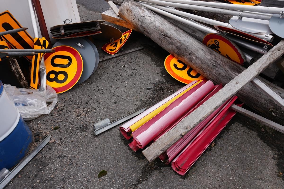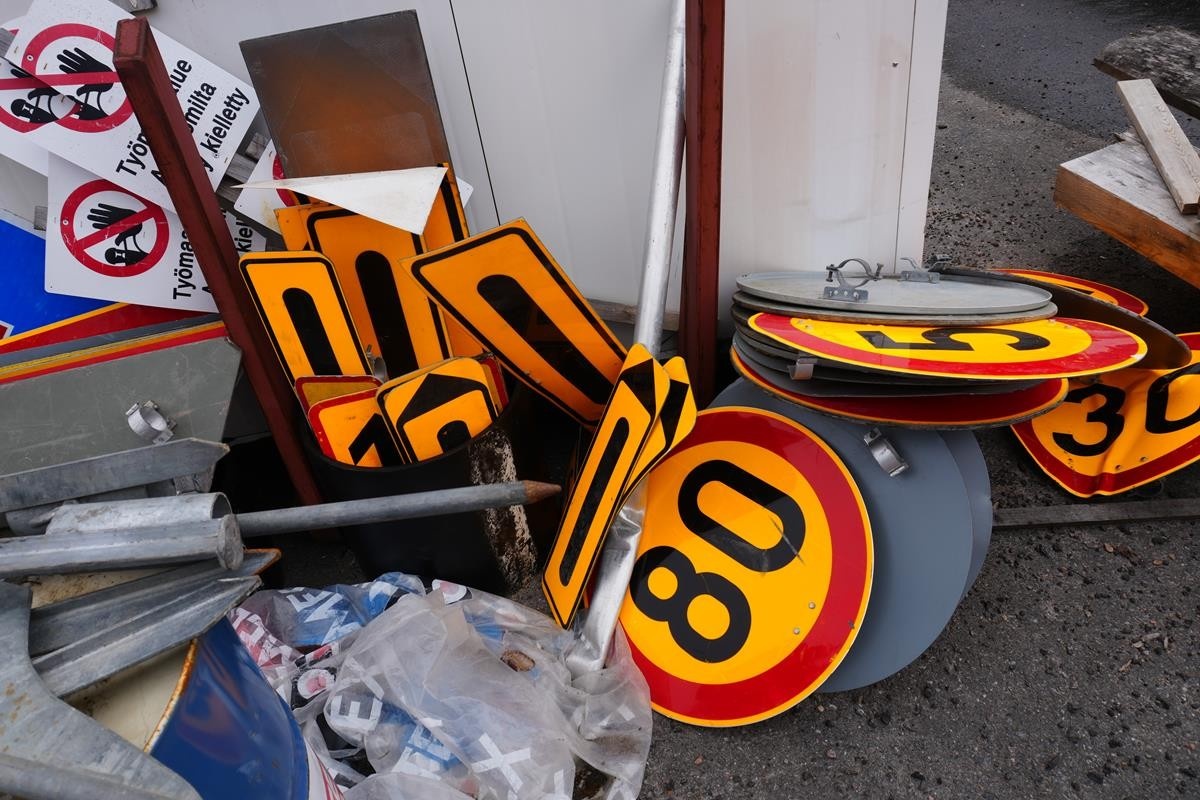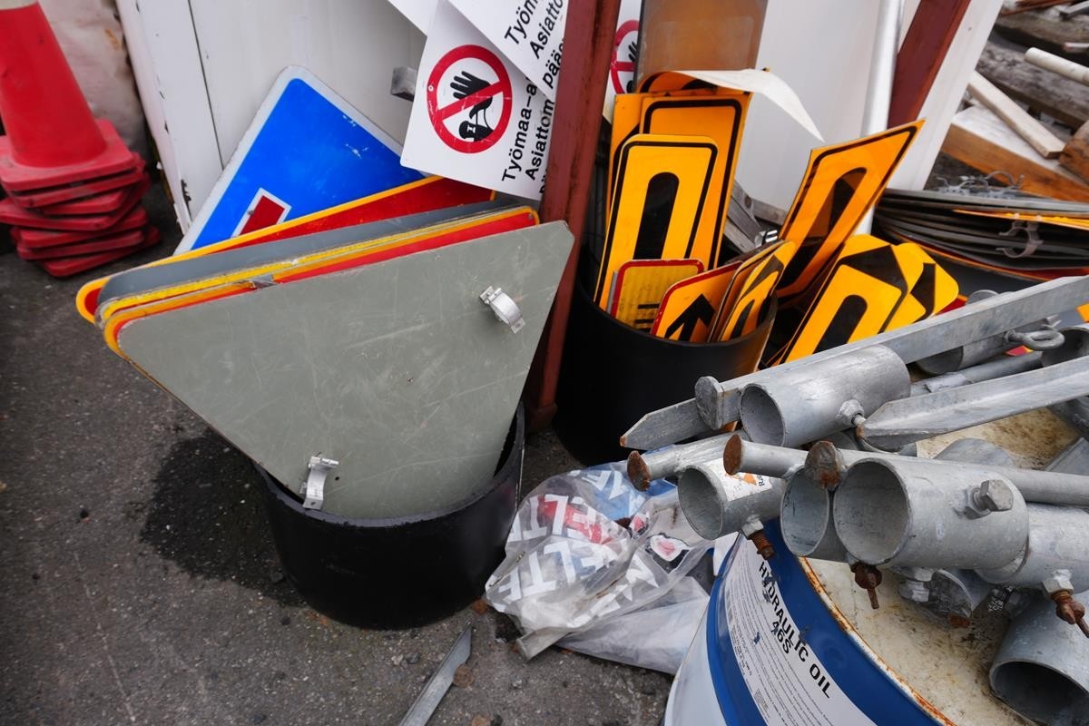 Myyntikohteet » 6. Ponnari Oy:n konkurssipesä, PIIPPOLA (1542935-2) NOUTO VAALA, 07.04.2026 » 87. Erilaiset liikennemerkit ja tynnyri