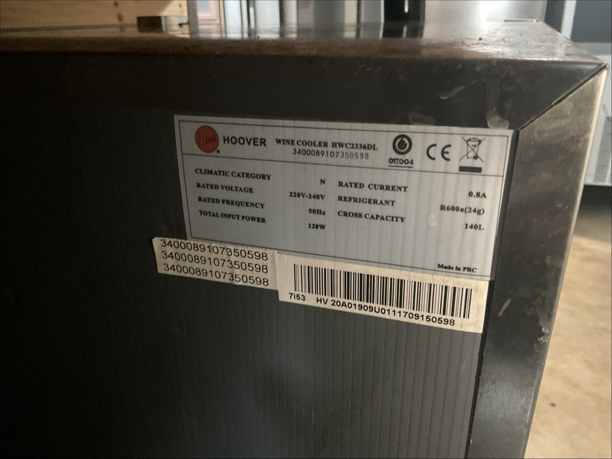 Myyntikohteet » 3. Captains Makasiini / ReSa Oy:n konkurssipesä, UUSIKAUPUNKI (3442164-7), 08.04.2026 » 56. Kahden lämpötilavyöhykkeen viinikaappi Hoover HWC2336DL