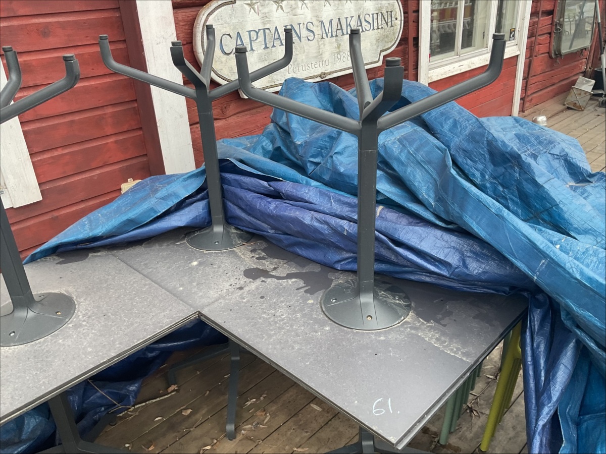 Myyntikohteet » 3. Captains Makasiini / ReSa Oy:n konkurssipesä, UUSIKAUPUNKI (3442164-7), 08.04.2026 » 61. Asiakaspöydät 10 kappaletta ja -tuolit 17 kappaletta