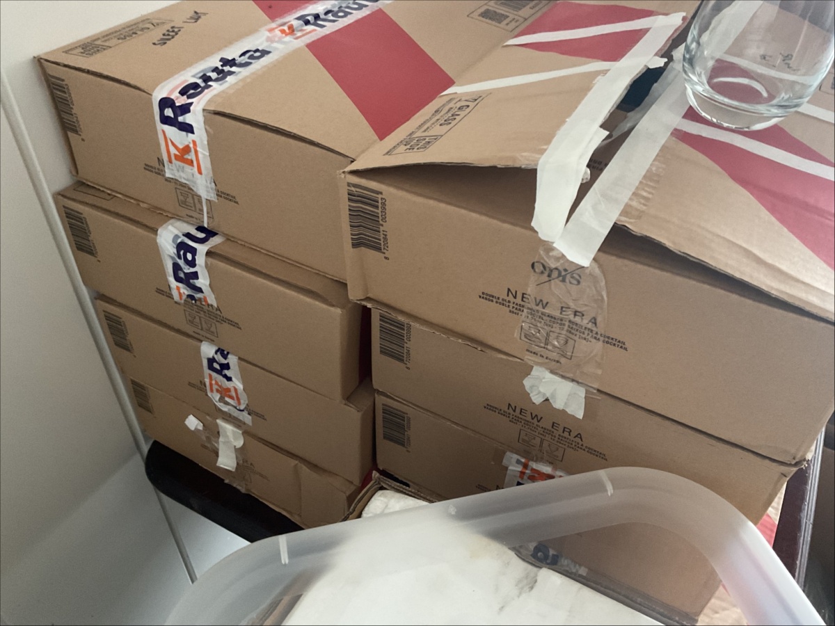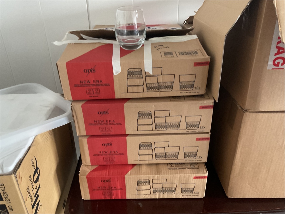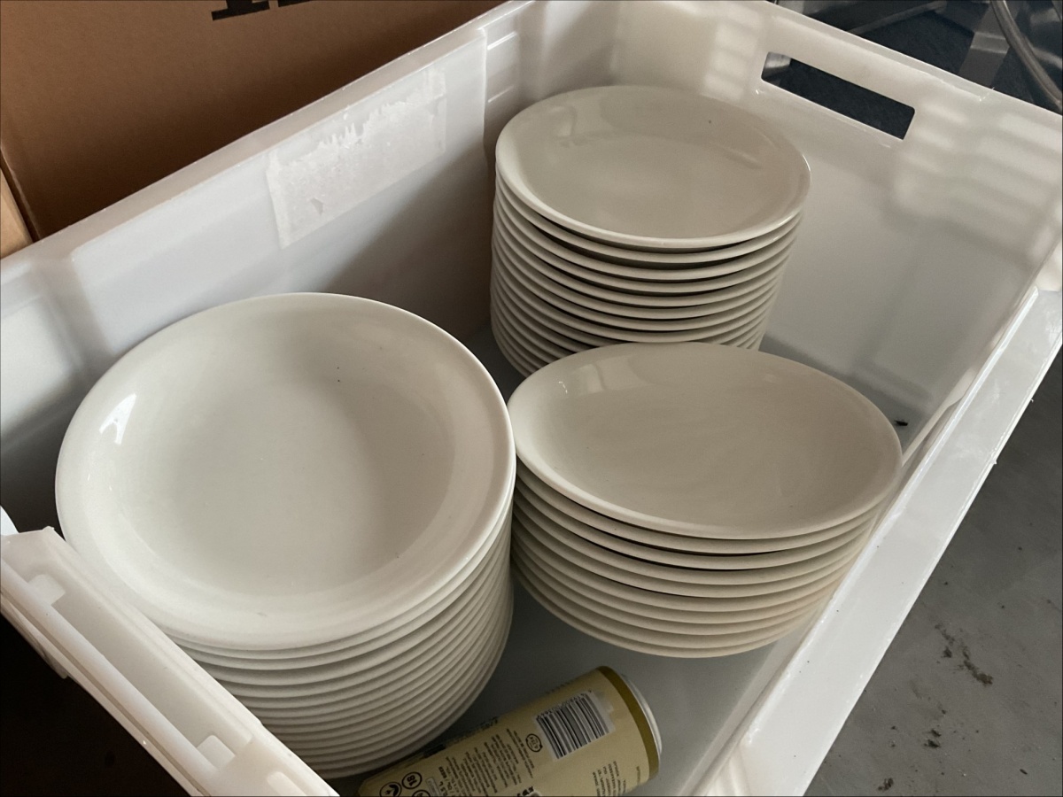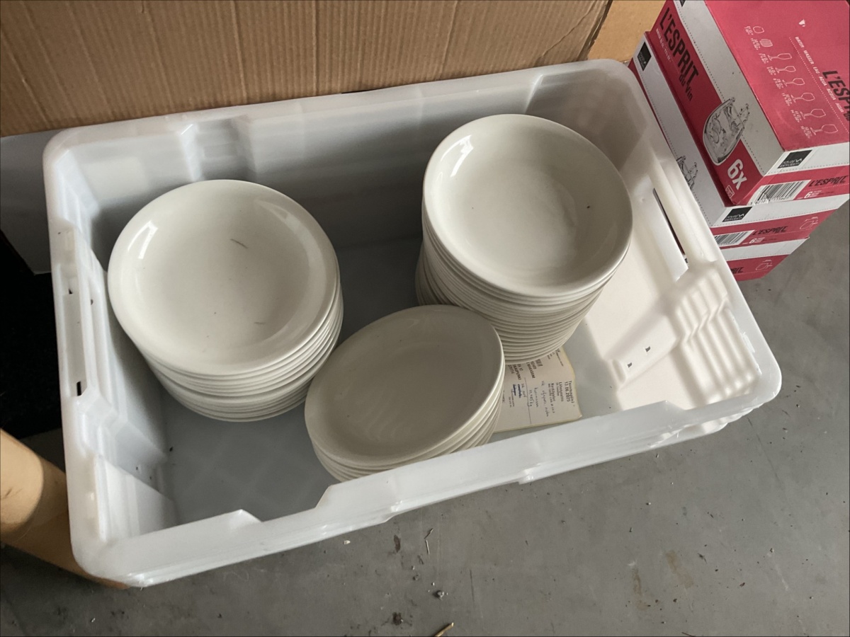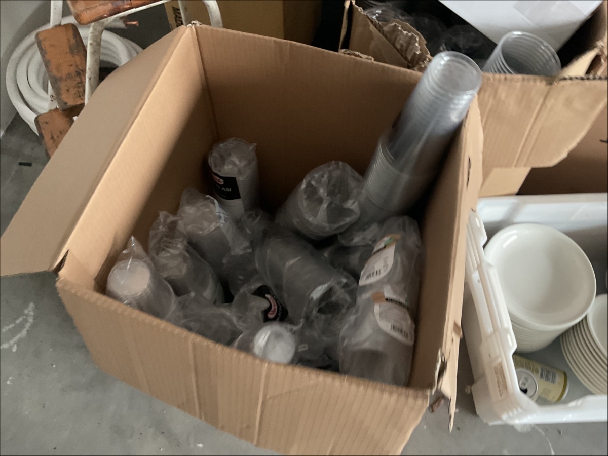 Myyntikohteet » 4. ReSa Oy:n konkurssipesä, UUSIKAUPUNKI (3442164-7), 08.04.2026 » 06. Muovilasit, lautaset, lasit yhteensä n. 15 laatikkoa / pakettia