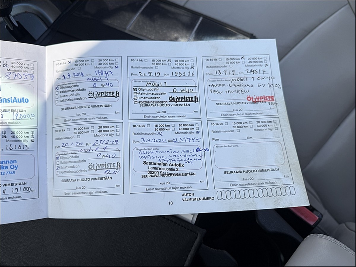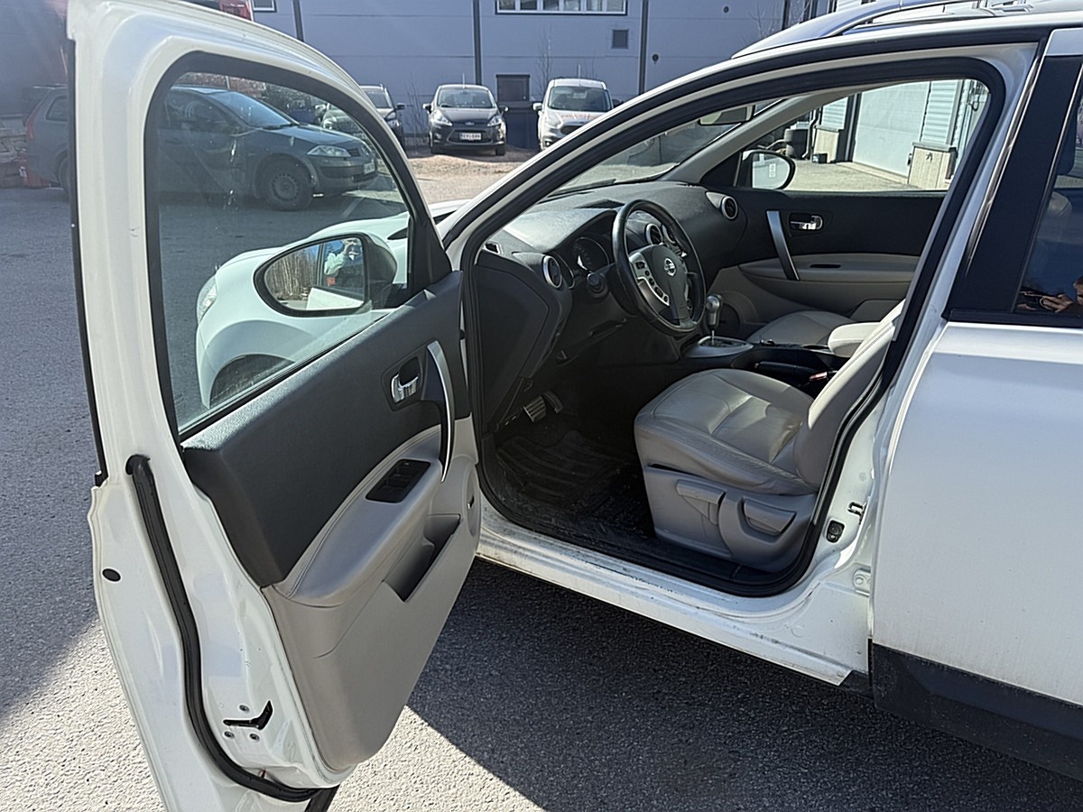 Lisätiedot: Siisti Nissan QASHQAI hyvillä varusteilla mm. Bosen äänentoisto, peruutuskamera, Keyless Go, panoraamakatto, vaaleat nahkapenkit, ISOFIX-varustus sekä kahdet renkaat alumiinivanteilla. Autolla ajettiin siirtoajoa noin parikymmentä kilometriä, eikä ajossa havaittu mitään normaalista poikkeavaa. Auto liikkui eteen ja taakse normaalisti, eikä kuulunut mitään epätavallisia kilinöitä tai kolinoita. Moottorinhäiriövalo palaa.