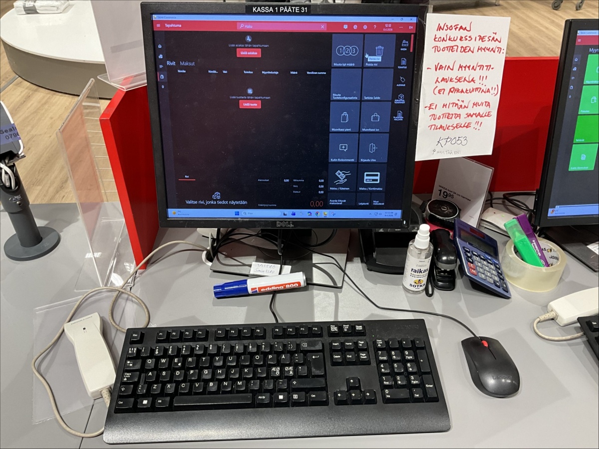 Myyntikohteet » 22. Indoor Group Oy:n konkurssipesä, PORI (1512332-9), 10.04.2026 » P55. Kassapisteen näytöt ja näppäimistöt yhteensä 6 kappaletta